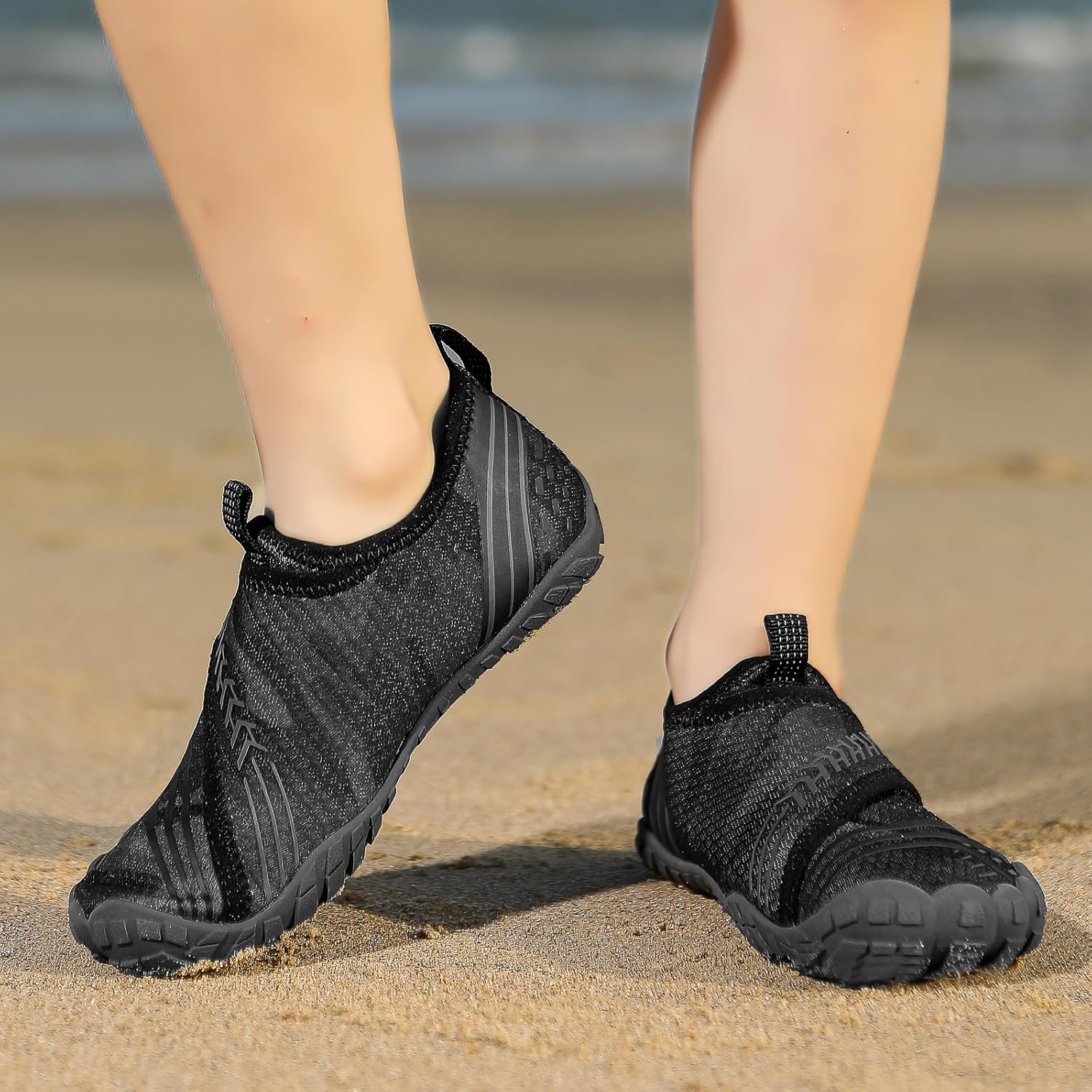 - Barefoot-Like Experience: These water shoes offer a soft and elastic feel, giving your kids the freedom to move and play comfortably. The toe design ensures a natural and barefoot-like experience, promoting healthy foot development.