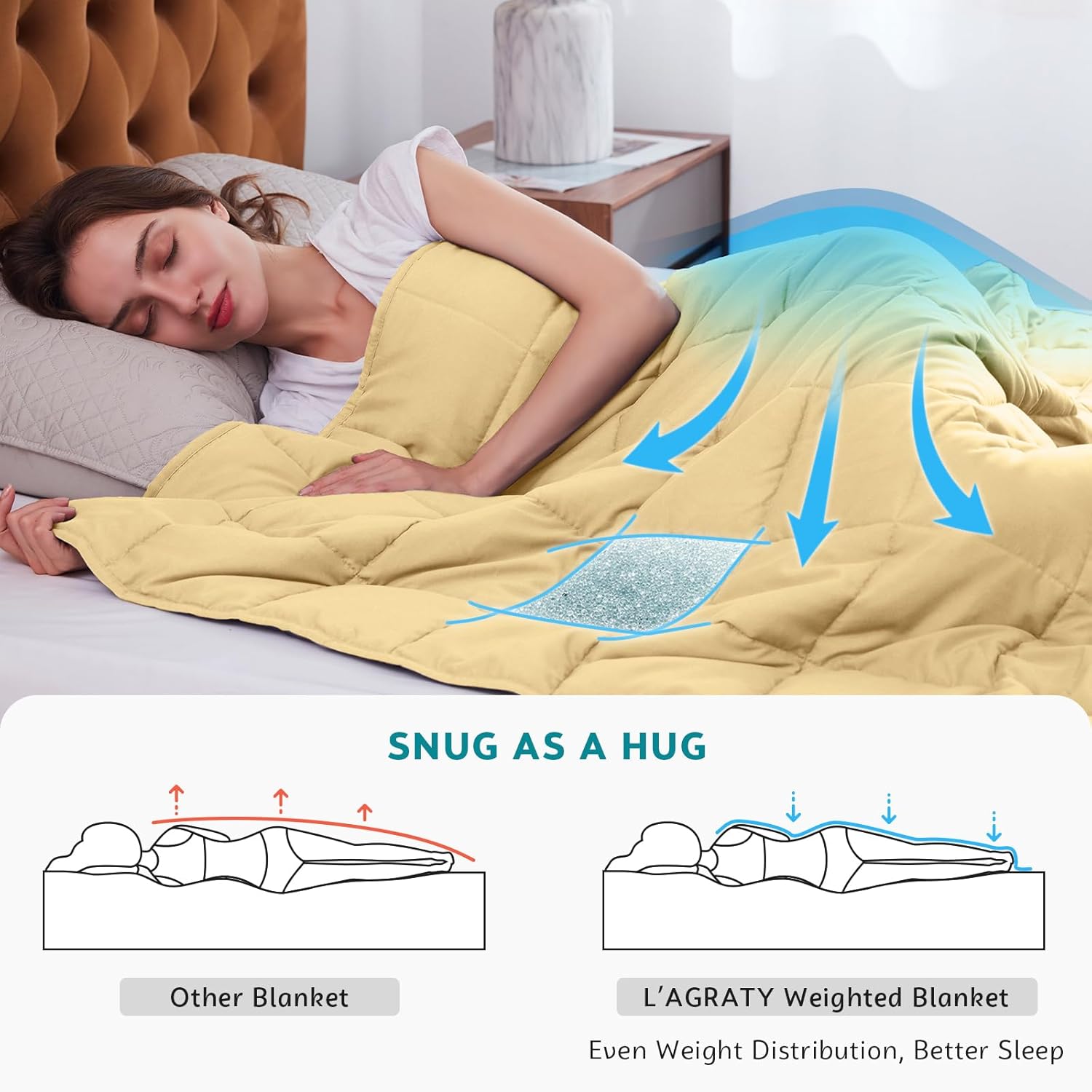 L'AGRATY Weighted Blanket - 48"x72" 20lbs Cooling Breathable Heavy Blanket Microfiber Material with Glass Beads Big Blanket for Adult All-Season Summer Fall Winter Soft Thick Comfort Blanket