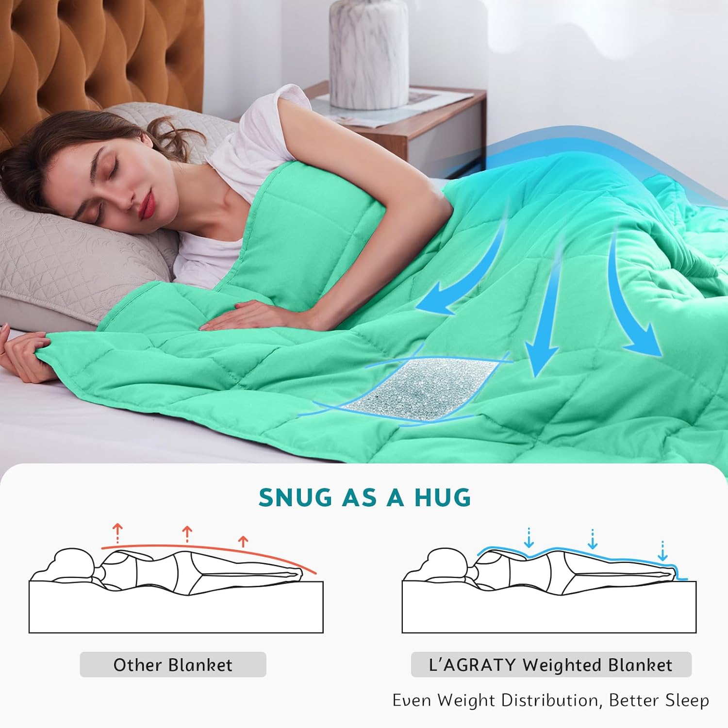 L'AGRATY Weighted Blanket - 48"x72" 20lbs Cooling Breathable Heavy Blanket with Glass Beads for Adult All-Season