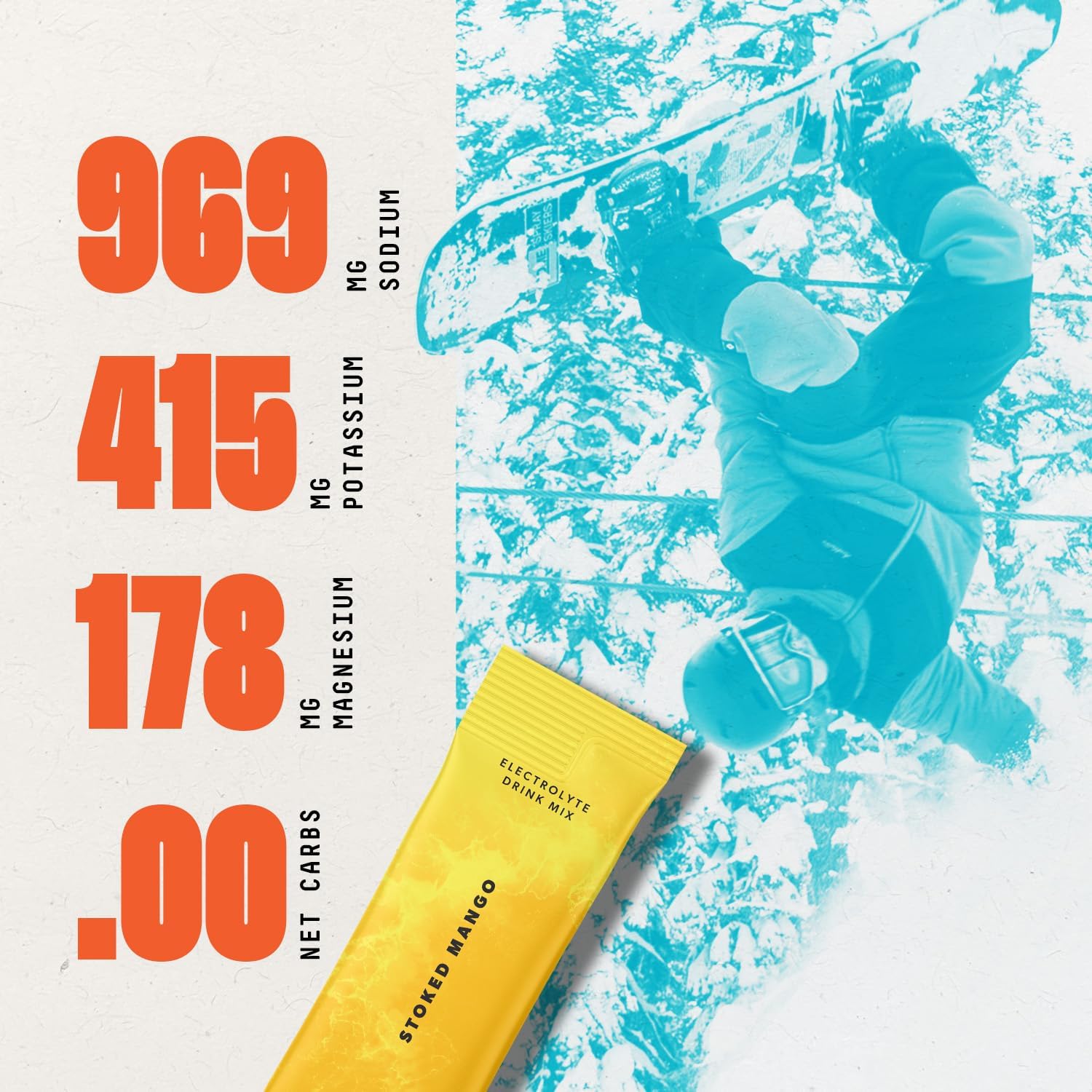 Keto Chow SALTT Electrolytes Powder Packets, Stoked Mango (30 Hydration Packets) - Magnesium, Potassium, Sodium, Trace Minerals - Vegan, Sugar & Gluten Free - Travel Essentials - Made in USA