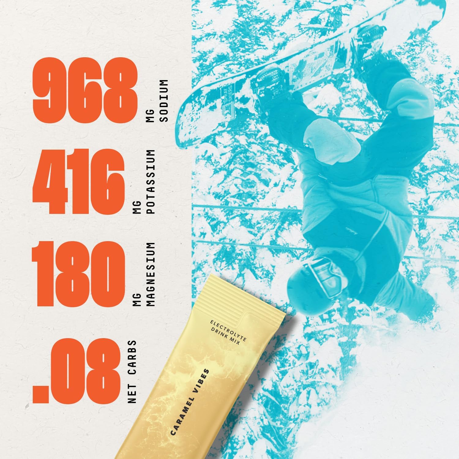 Keto Chow SALTT Electrolytes Powder Packets, Caramel Vibes (30 Hydration Packets) - Magnesium, Potassium, Sodium, Trace Minerals - Vegan, Gluten Free, Sugar Free - Travel Essentials - Made in USA