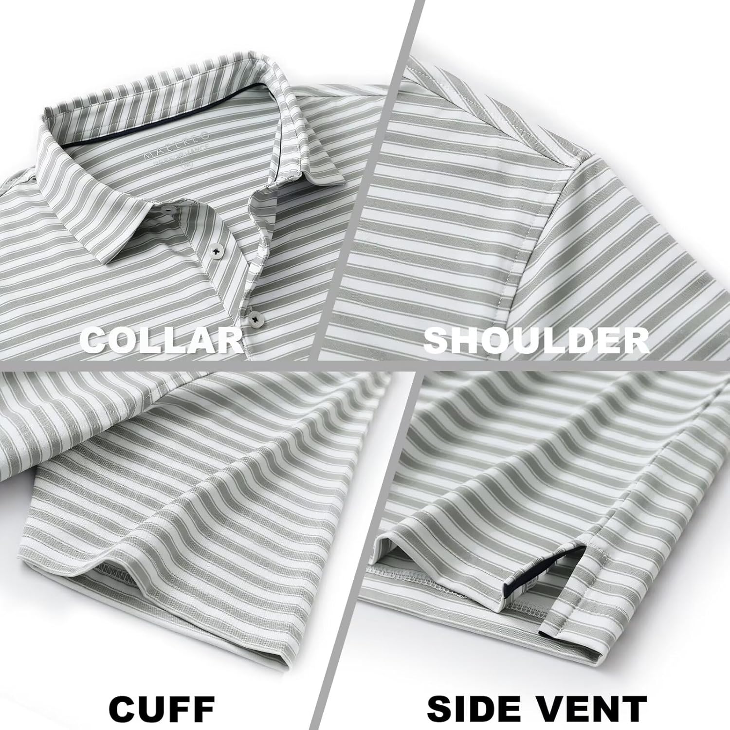 M MAELREG Golf Shirts for Men Short Sleeve Dry Fit Casual Striped Performance Moisture Wicking Collared Mens Polo Shirts