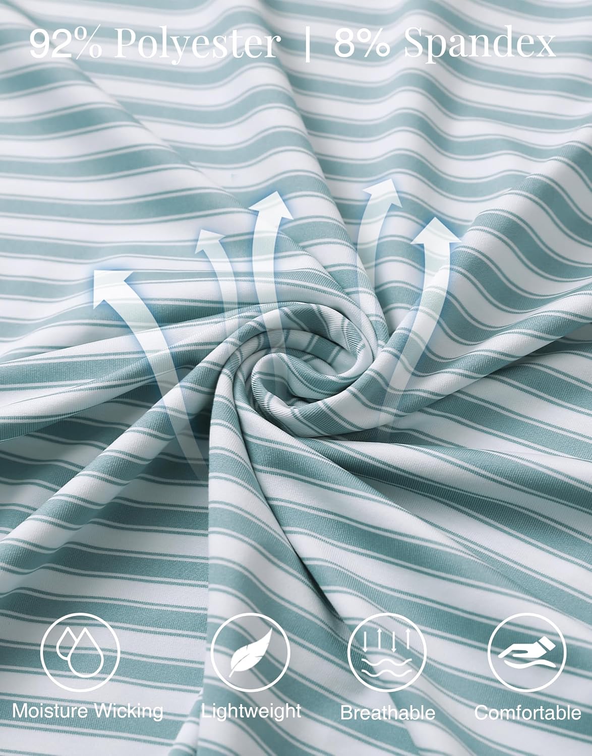 - PERFORMANCE FABRIC: This mens polo shirts short sleeve are made of yarn dyed stripe jersey with polyester and spandex , which is soft hand-feel, lightweight, UPF 30+ and breathable to keep you cool and cosy in hot weather.