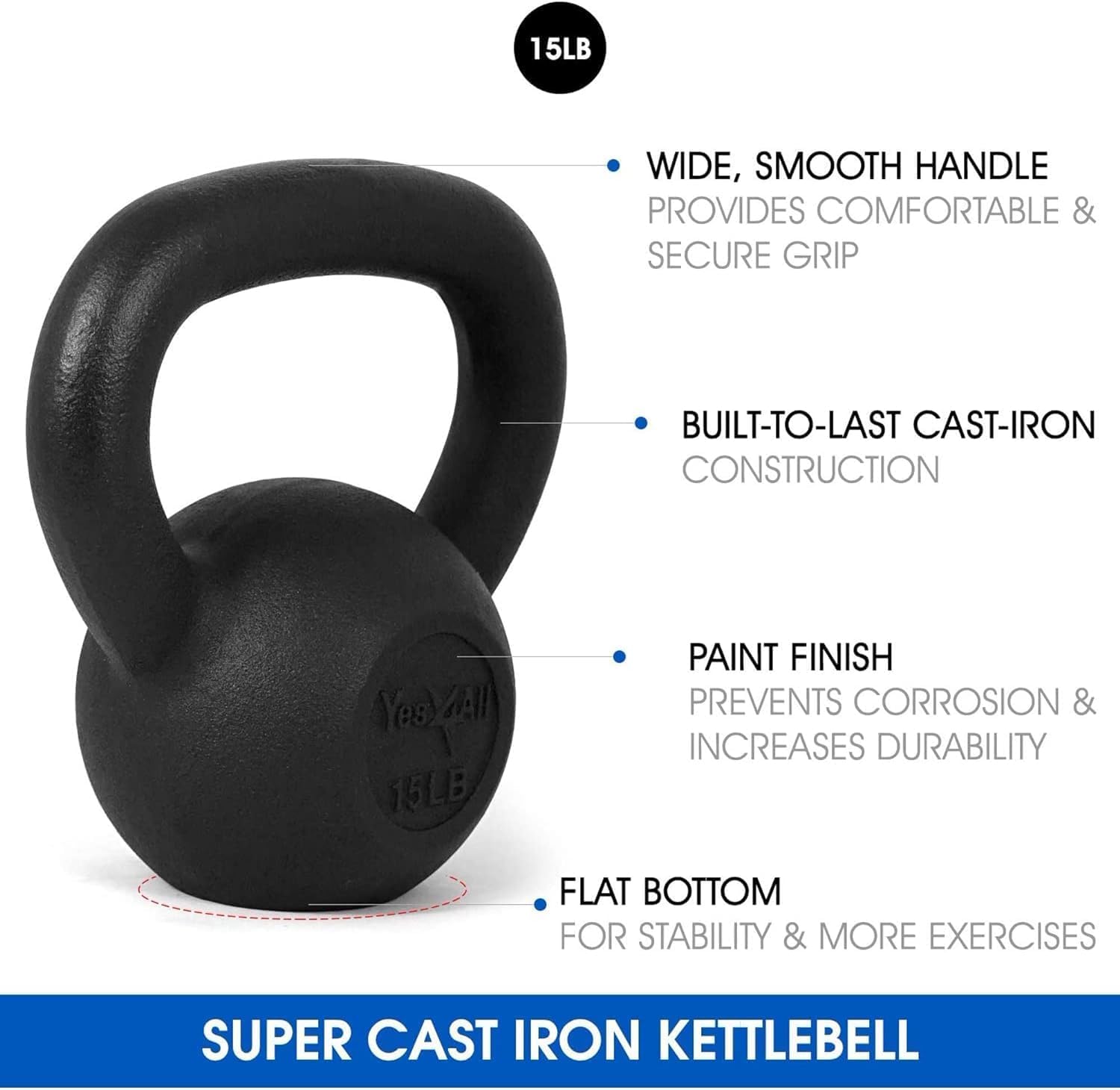 - 15 LB KETTLEBELL SET OF 2 CAST IRON WEIGHTS: Crafted for longevity, strength training kettlebells showcase a sturdy solid cast iron construction without welds, weak spots or seam, offering consistently high performance through fitness journey