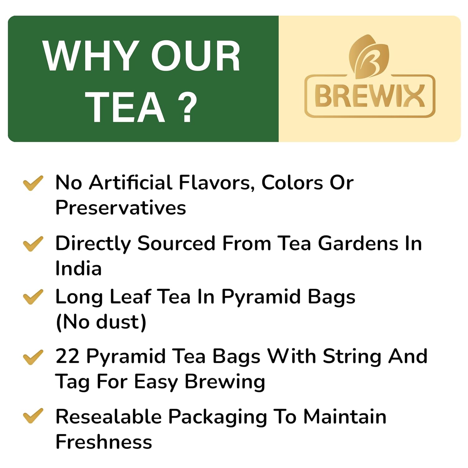 BREWIX, Green Tea (22 Pyramid Tea Bags) | Supports Overall Health, Natural & Pure High Grown Green Tea | Caffeinated & Gluten Free | Direct From India