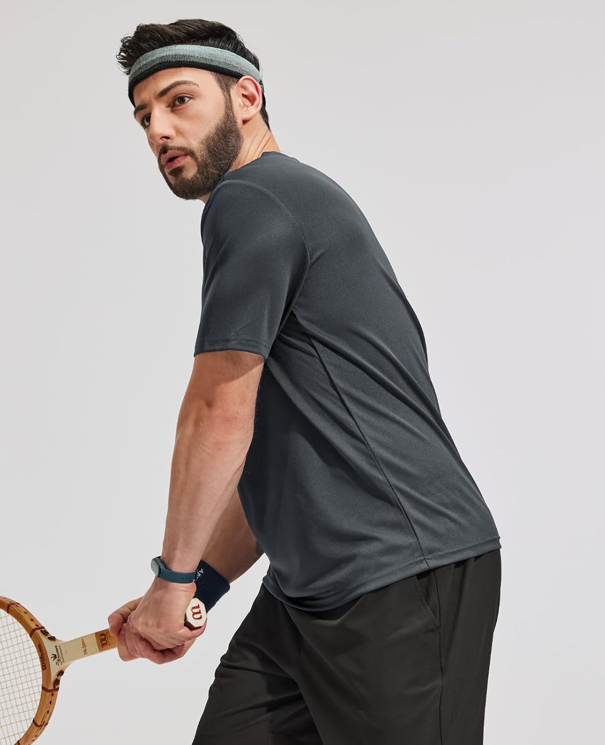 MIER Men's Quick Dry Workout Shirts Moisture Wicking Running Athletic Performance T-Shirts Recycled Polyester Top Tee