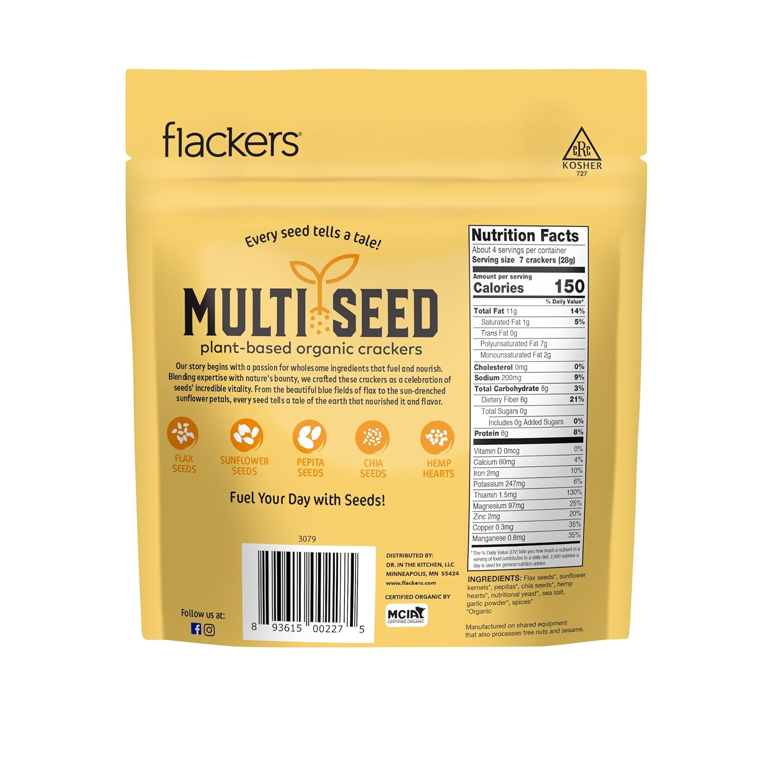 Flackers Organic Cheeze-Pleaze Multi-Seed Crackers, 4 Ounce 6-Pack, Gluten Free, Non GMO, Vegan, Keto Snack, 6g protein, 6g Fiber, 2g Net Carbs