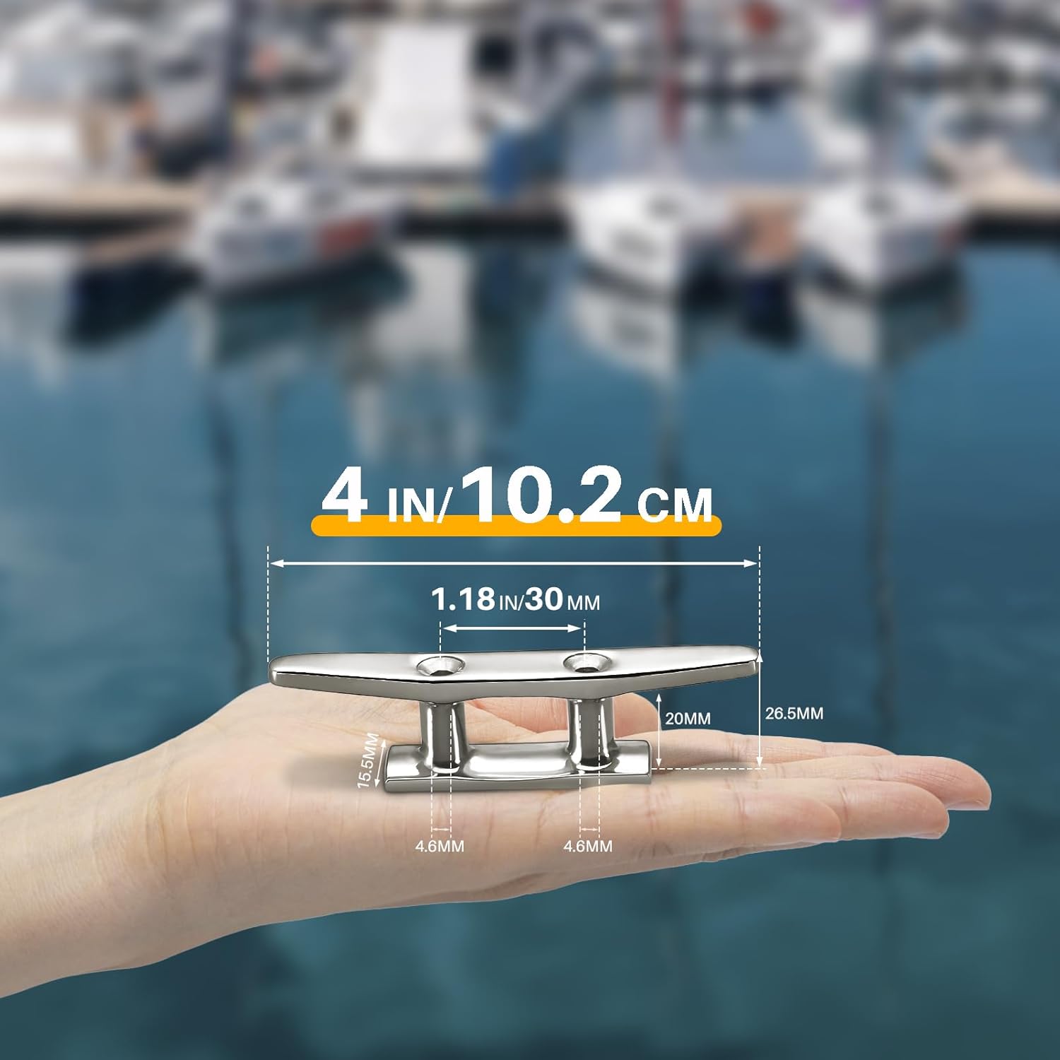 Boat Cleats Marine Grade 316 Stainless Steel Boat Mooring Cleat Pack of 4, Installation Accessories Included