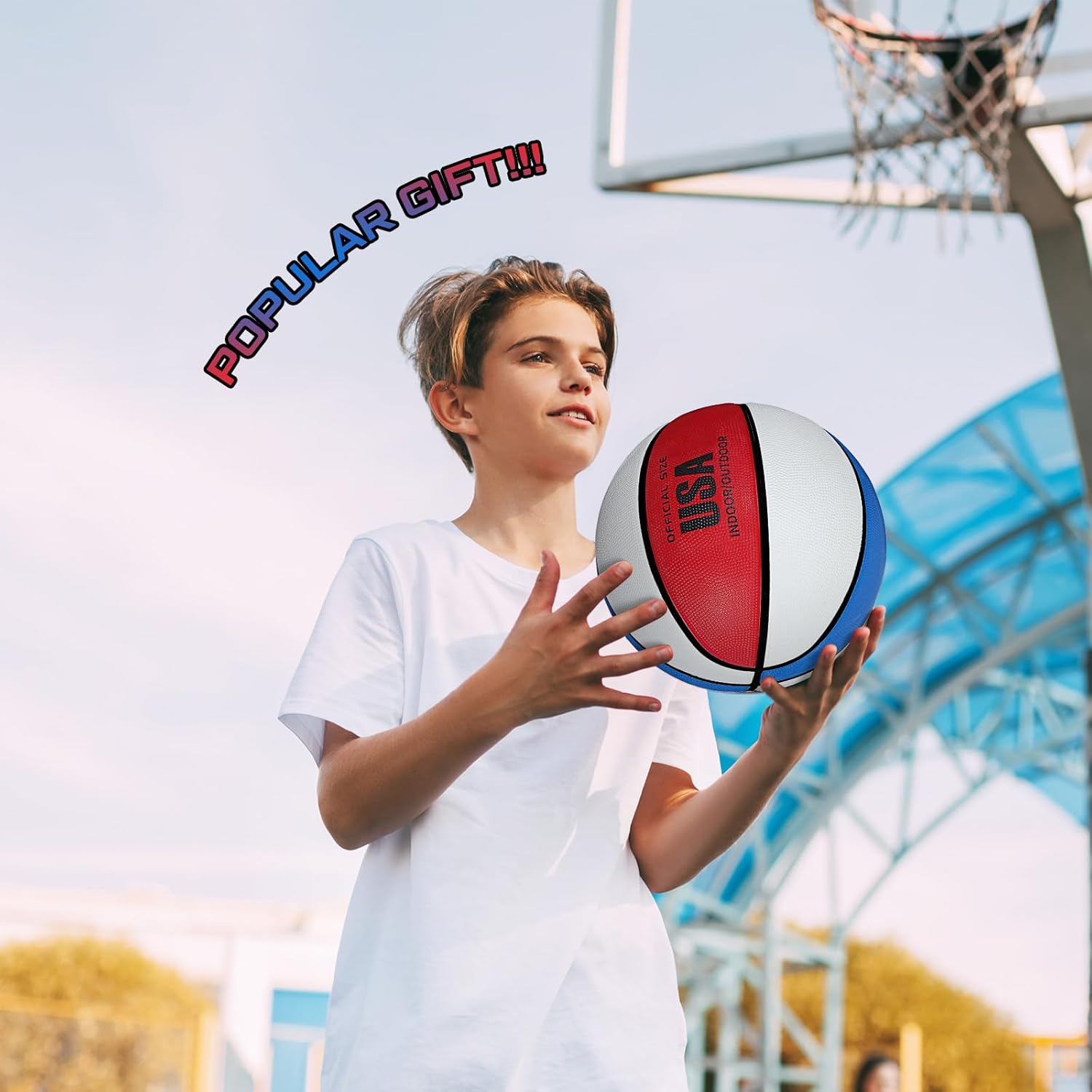 - Color Design: the official size basketballs design with bright red blue white color, provides good visibility when you're organizing practice and playing outdoors; They are the ideal gift for basketball lovers, both boys and girls, men and women will love them