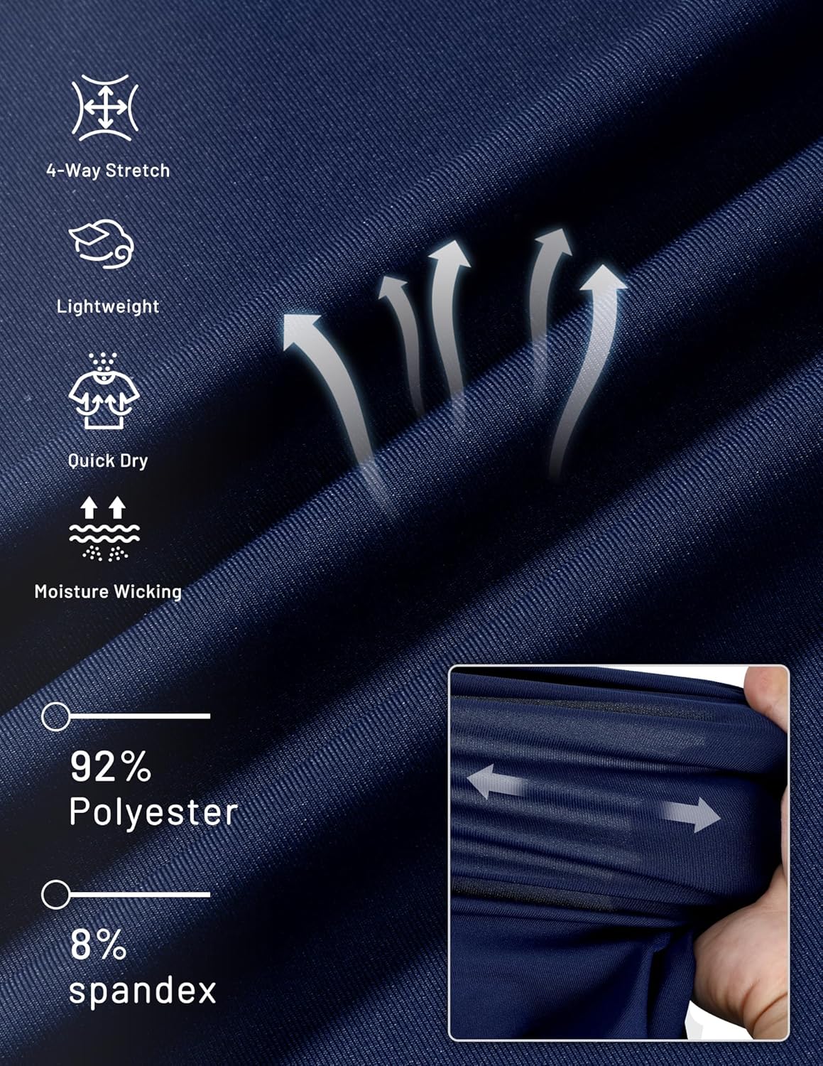 - Fabric type : 92% Polyester, 8% Spandex