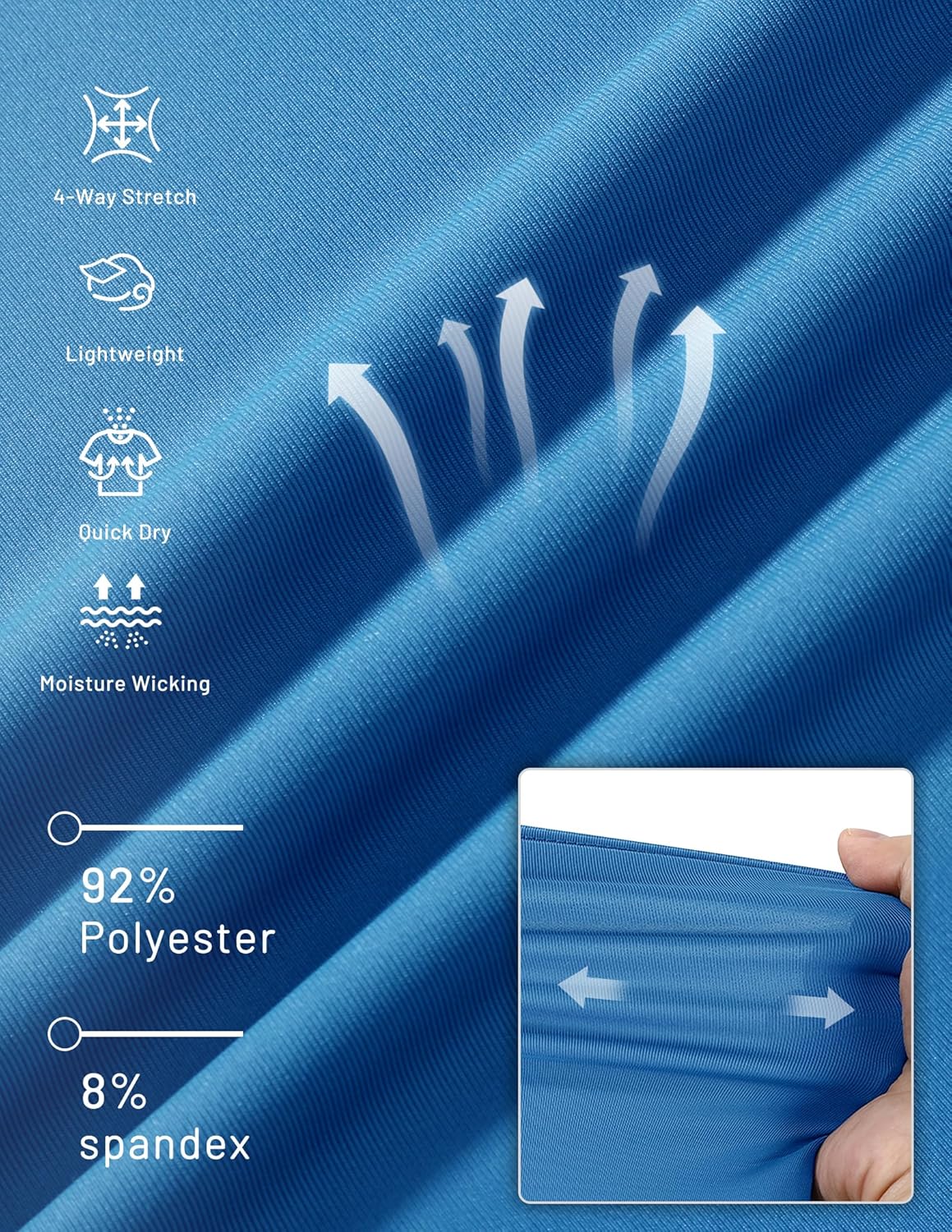 - Fabric type : 92% Polyester, 8% Spandex