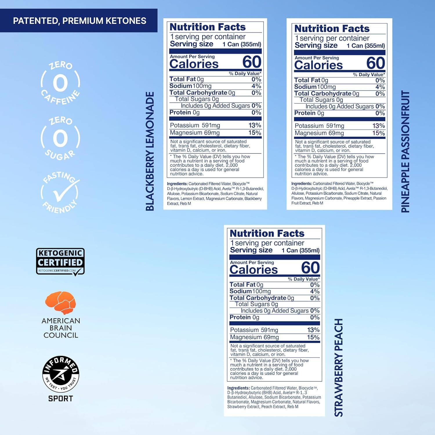 KENETIK Nootropic Ketone Drink, Ketones for Energy & Focus, Caffeine & Sugar Free, High Performance D-BHB Ketone Mix, Fuel w/Zero Crash or Jitters, Ready to Drink - Variety 6 Pk