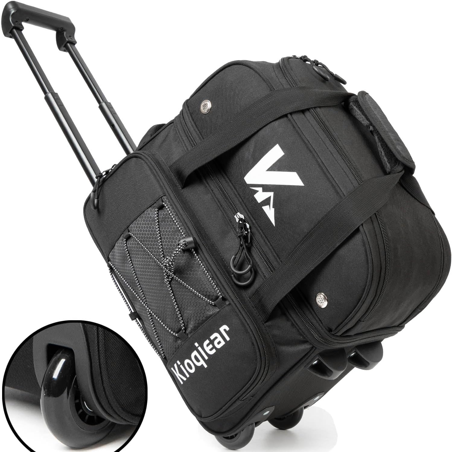 - Separate Shoe Compartment - The Kioqiear double roller bowling ball bag main compartment can easily accommodate 2 bowling balls, top compartment with air vents which can store a pair of bowling shoes up to men size 15,extra storage pocket can store small items.