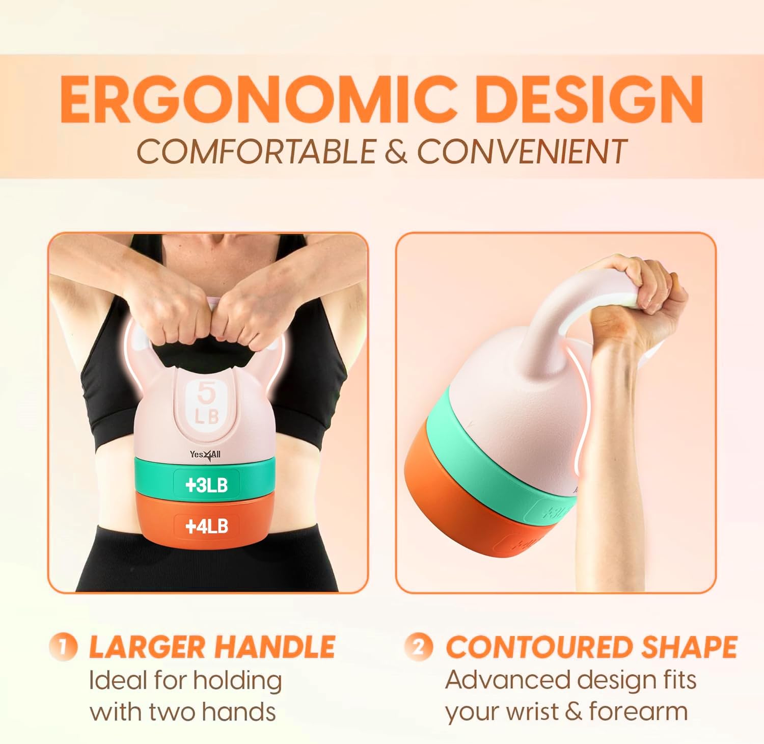 - WIDE COMFORTABLE HANDLE: The kettlebell has wide handle, providing flexibility and better grip for exercises requiring both arms; The contoured shape of adjustable kettlebell set is a comfortable fit during workout