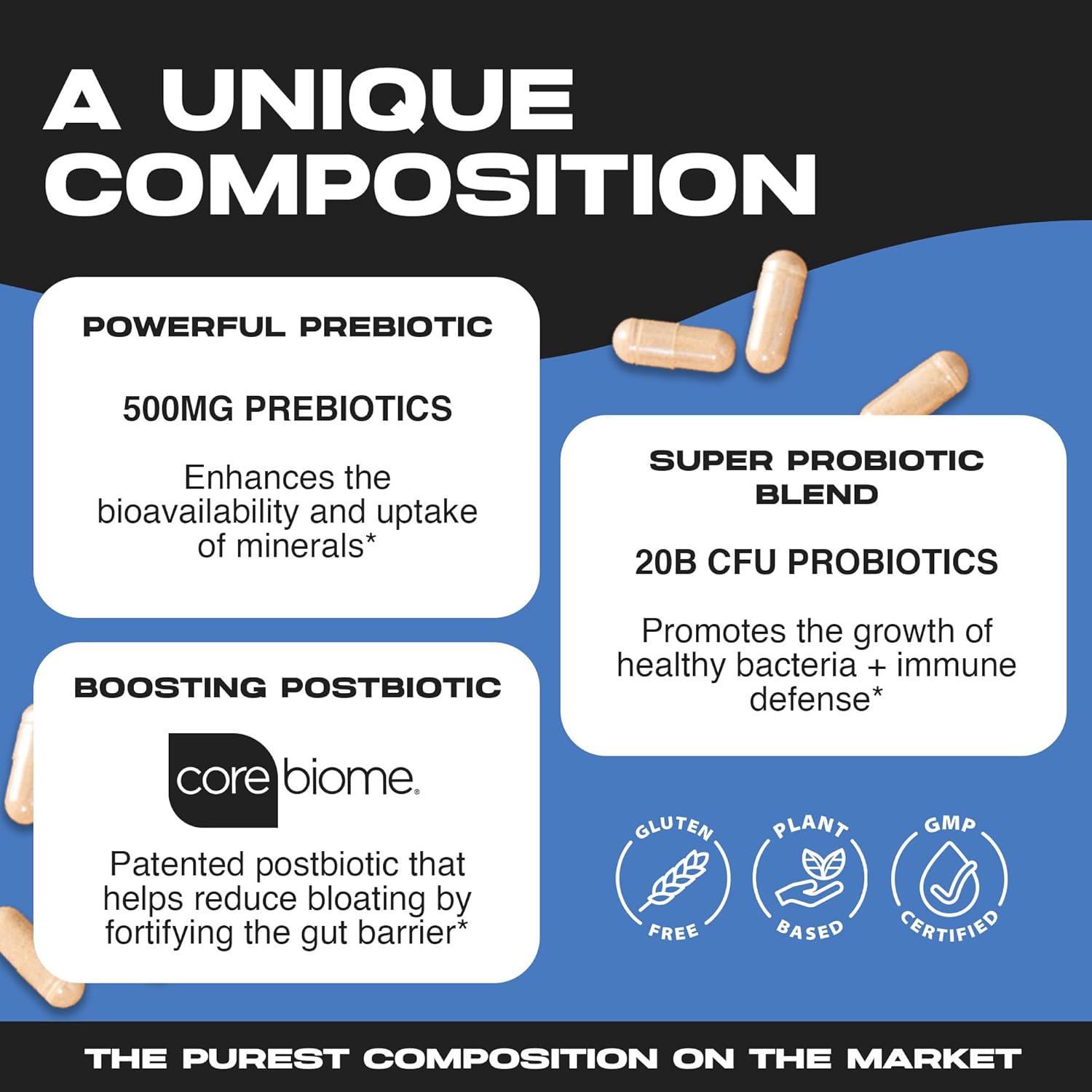 - Maintain Balanced Gut Flora and Wellness: A powerful blend of 20 billion CFUs of probiotics and 500mg of prebiotics works synergistically to balance gut flora, promoting healthy digestion and immune function.