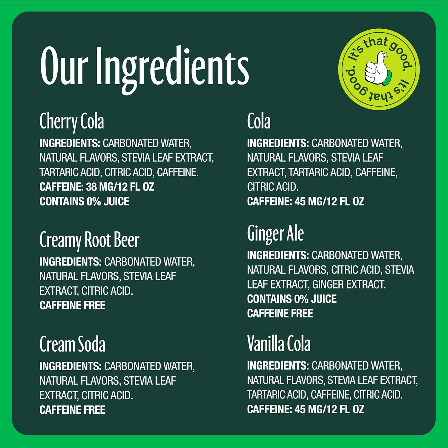 - 4 Cans of Each: Cola, Cherry Cola, Cream Soda, Ginger Ale, Creamy Root Beer, Vanilla Cola