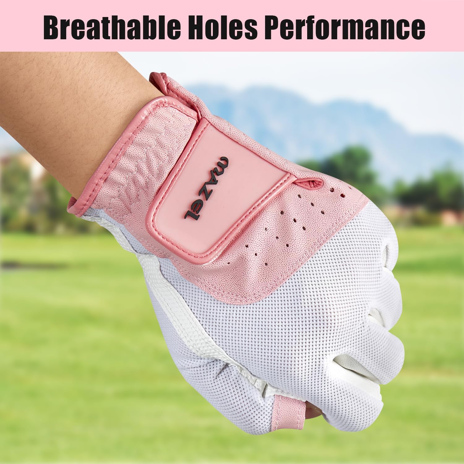 - BREATHABLE & COMFORTABLE: The palm of ladies golf glove made of high end synthetic which offer powerful grip & durability In any conditions.The back features spandex mesh with small breathable holes, keeping your hands cool and comfortable.