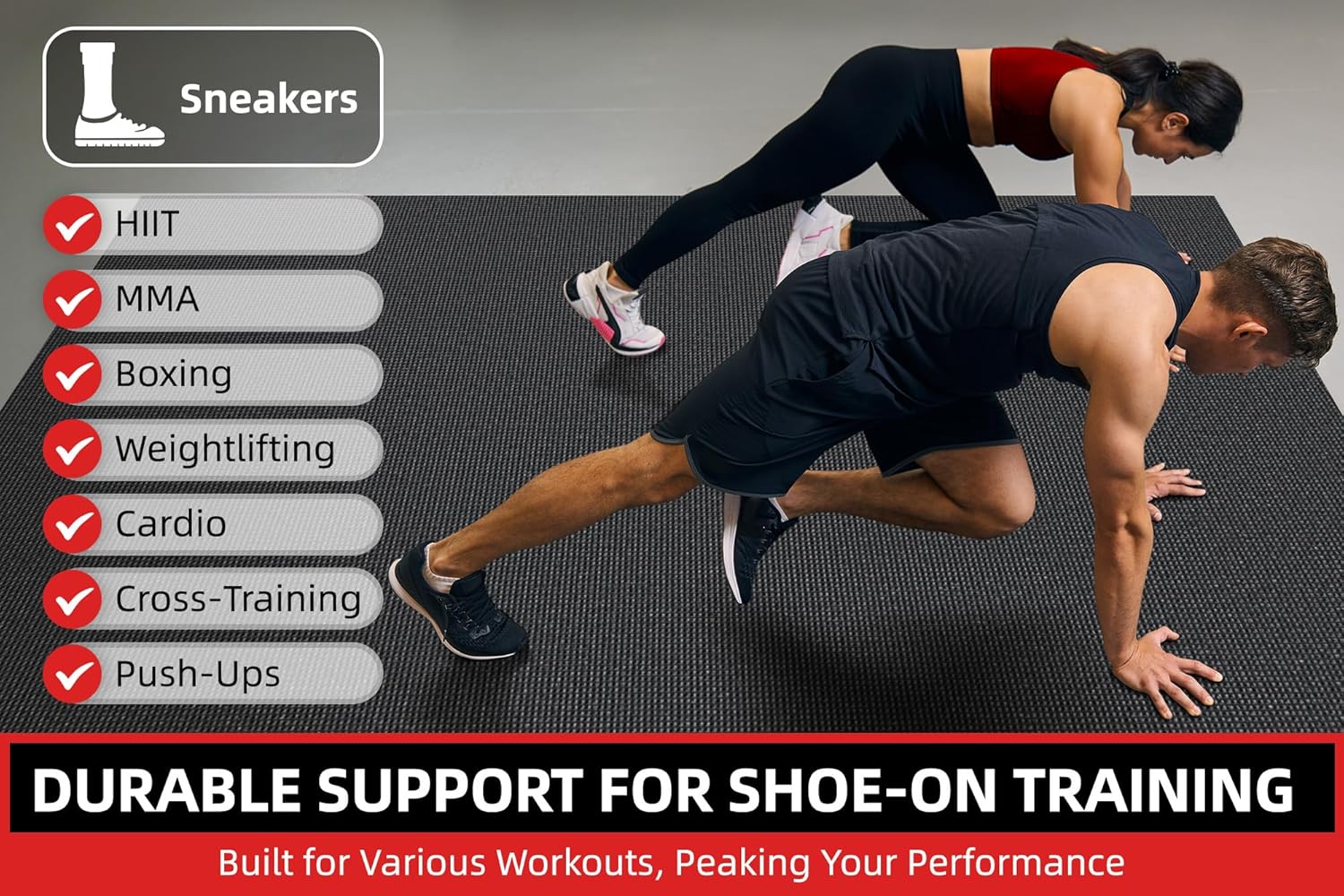Extra Large Exercise Mat, 10'x6'/9'x6'/8'x6'/7'x5'/6'x4' (8mm/10mm) Thick Workout Mat for Home Gym Flooring, Garage, Shoe-Friendly, High-Density, MMA, HIIT, Weight Lifting, Cardio&Strength