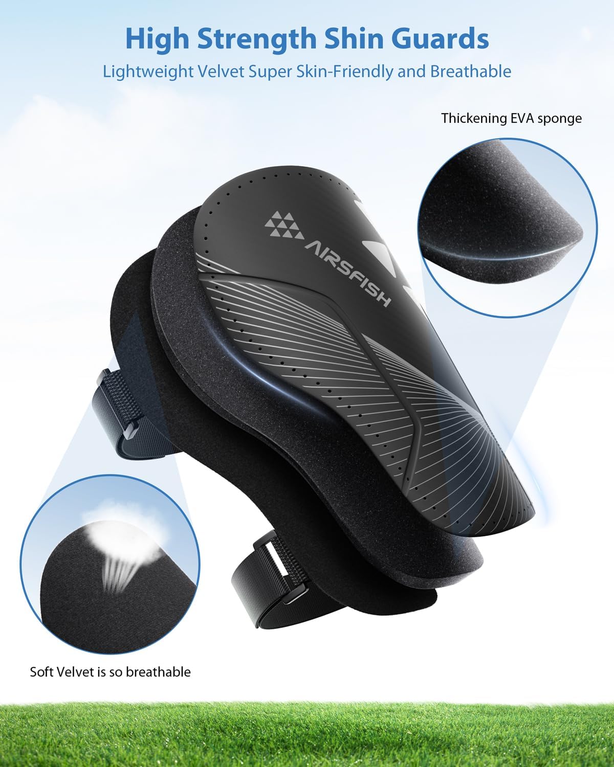 - Meticulous Care for Your Kids: With Airsfish soccer shin guards, you donβt need to worry about your kids getting hurt in their loving soccer games. If you have any questions about this shin guard, please do not hesitate to contact us