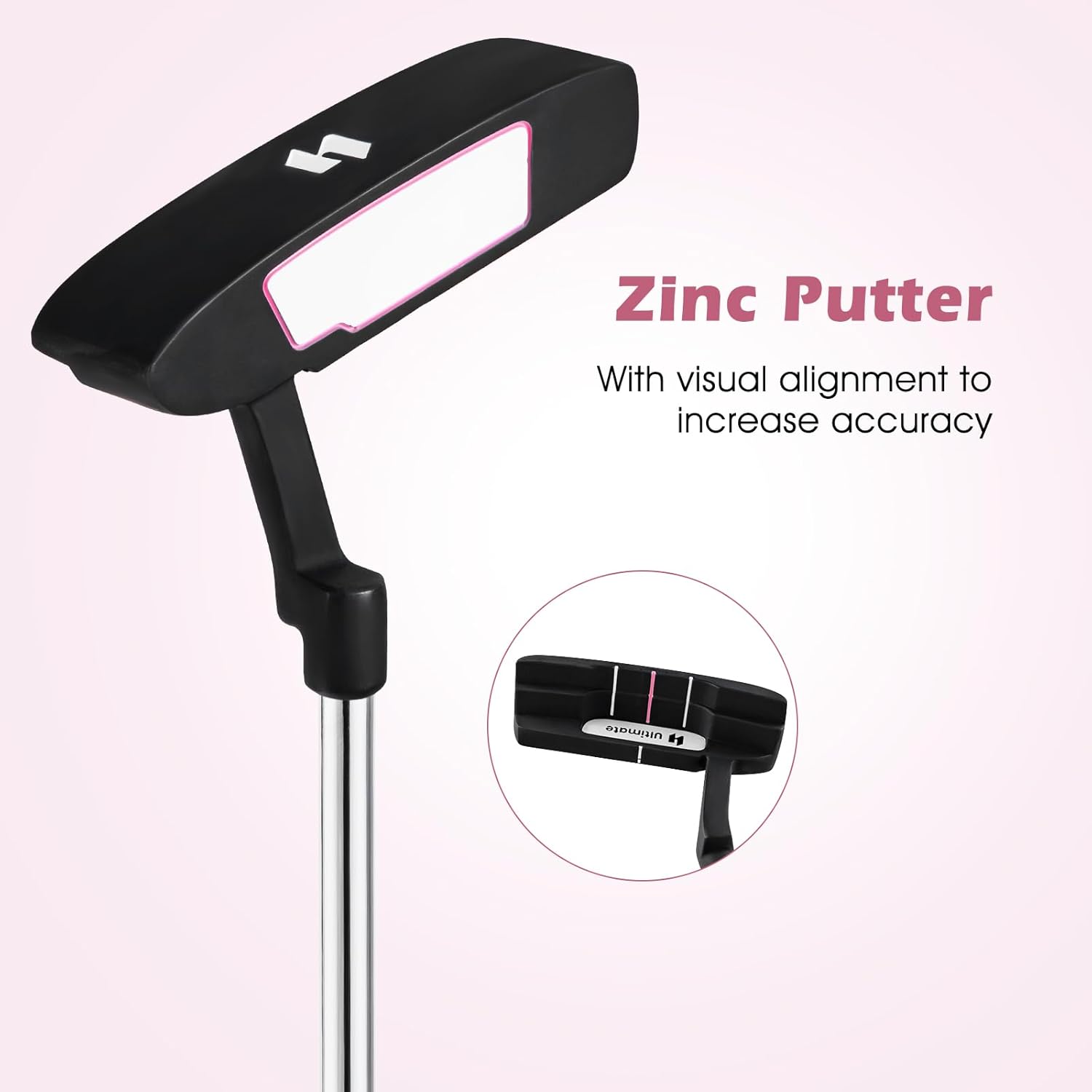 - Putter with Alignment Aid: The top-notch zinc putter with visual alignment is built for enhanced accuracy and consistency on the putting surface, which help you improve your short game and sink putts with confidence.