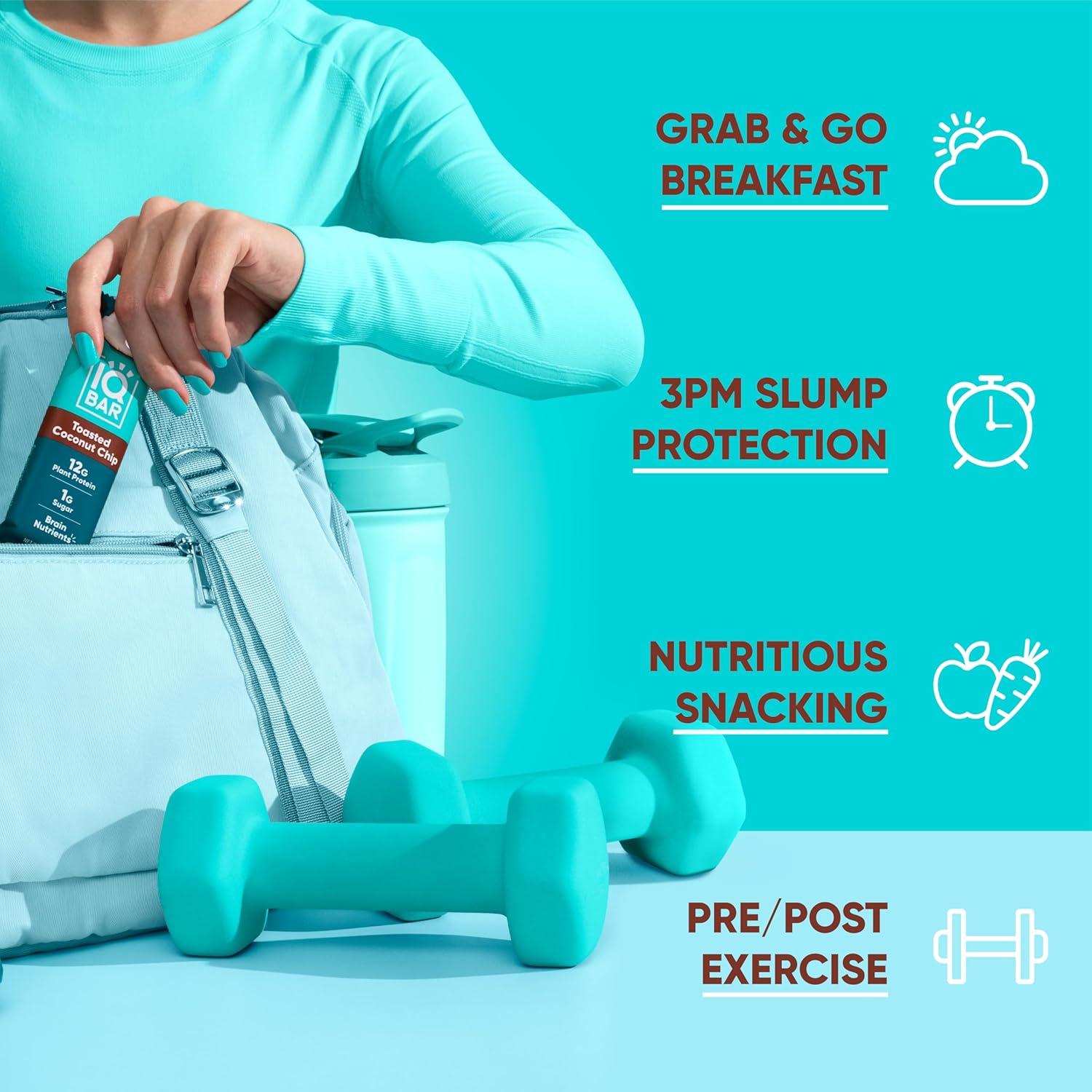 IQBAR Brain and Body Plant Protein Bars - Toasted Coconut Chip - 24-Count Low Carb - Gluten Free, High Fiber, Vegan Snacks - Low Sugar Meal Replacement
