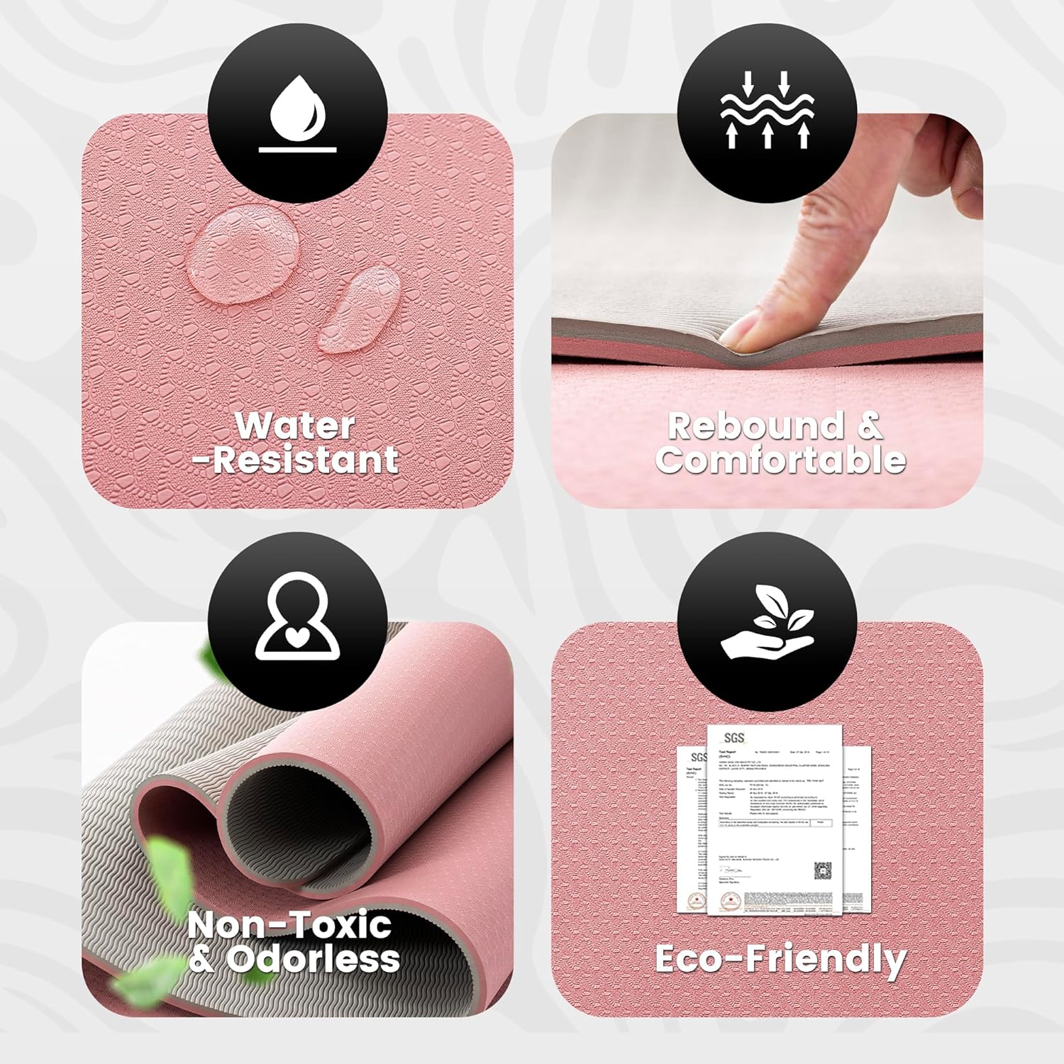Large Yoga Mat for Men and Women 1/4 & 2/5 Inch Extra Thick TPE Fitness Mat for Home Gym Workout, Non-Slip, Eco Friendly Exercise Mat for Yoga, Pilates, Stretching, Meditation