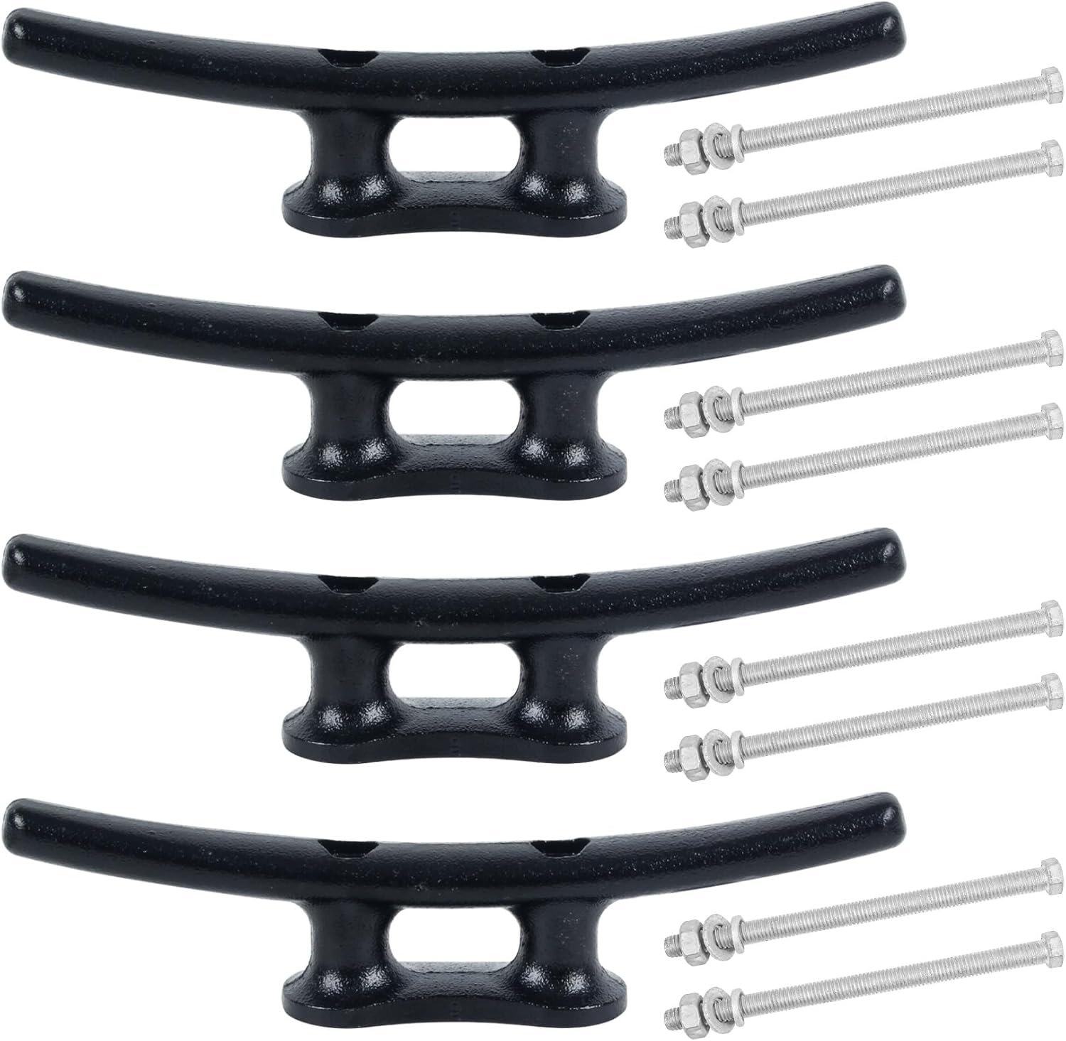 - 【Corrosion Resistance】These electrophoretic coated cast iron boat cleats are highly strong and offer excellent protection against rust. The package includes 4 dock boat cleats along with 8 bolts and nuts, making them suitable for both indoor and outdoor use. The electrophoretic coating on the metal dock cleats provides a strong defense against corrosion, it acts as a protective barrier, effectively preventing the formation of rust and corrosion on the underlying metal