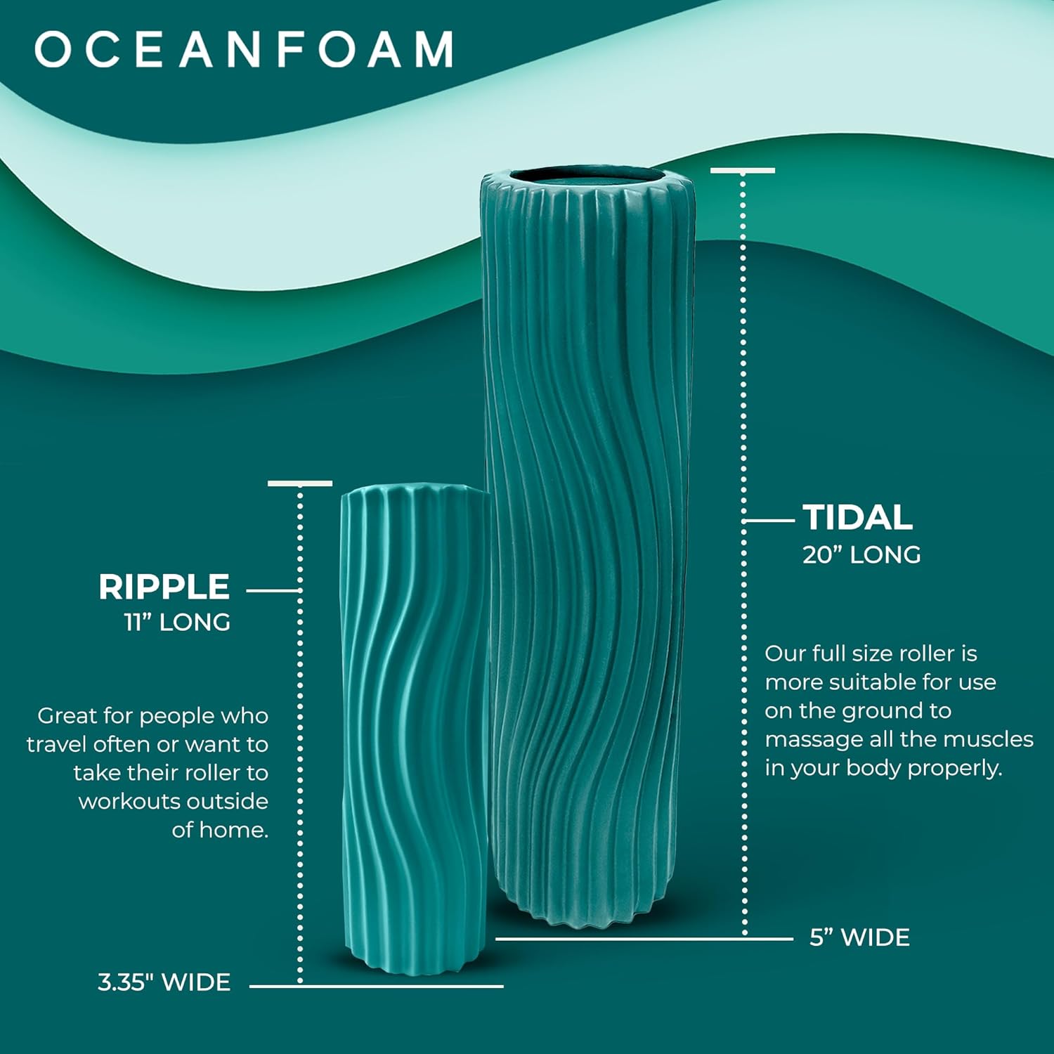 Oceanfoam Tidal Roller - Jade - Muscle Massage Foam Roller for Back Pain & Stretching - Firm and Ergonomic Wide Wave Textured - Yoga, Athletics, & Wellness - Full Size, 20" x 5"