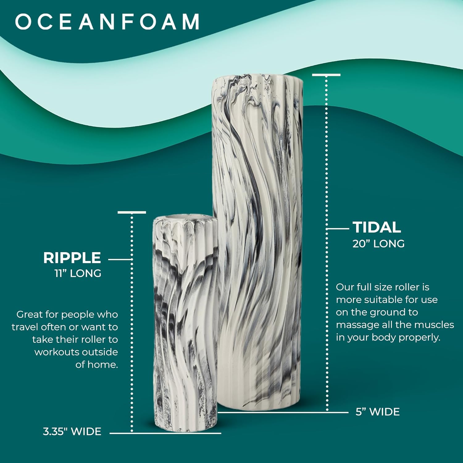 Oceanfoam Tidal Roller - Black Marbled - Muscle Massage Foam Roller for Back Pain & Stretching - Firm and Ergonomic Wide Wave Textured - Yoga, Athletics, & Wellness - Full Size, 20" x 5"