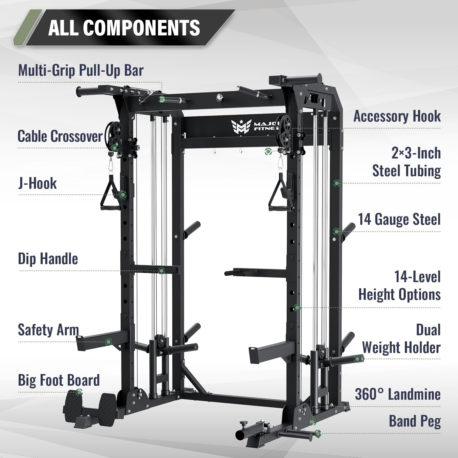 MAJOR FITNESS F22 Multi-Functional Power Rack—1600lbs Capacity All-in-One Squat Rack with Dual Pulley System for Home Gym Strength Training