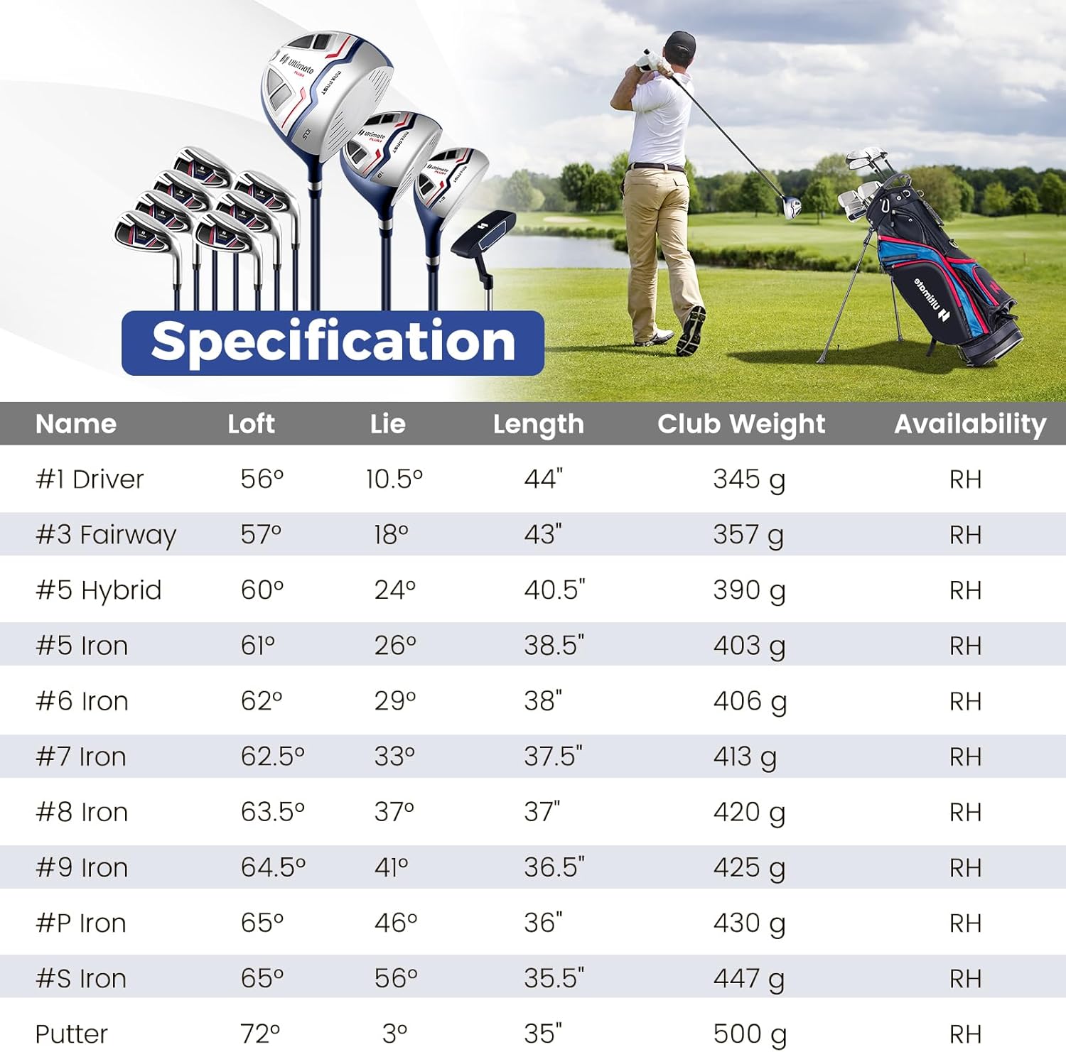 - 🏌️【Complete Golf Clubs Set for Men】 This golf set is equipped with premium golf clubs to meet all your training or competition needs, including #1 driver, #3 fairway, #5 hybrid, #5 & #6 & #7 & #8 & #9 & #P & #S stainless steel irons and zinc alloy head putter. Additionally, 3 head covers provide extra protection for your driver, hybrid and fairway.