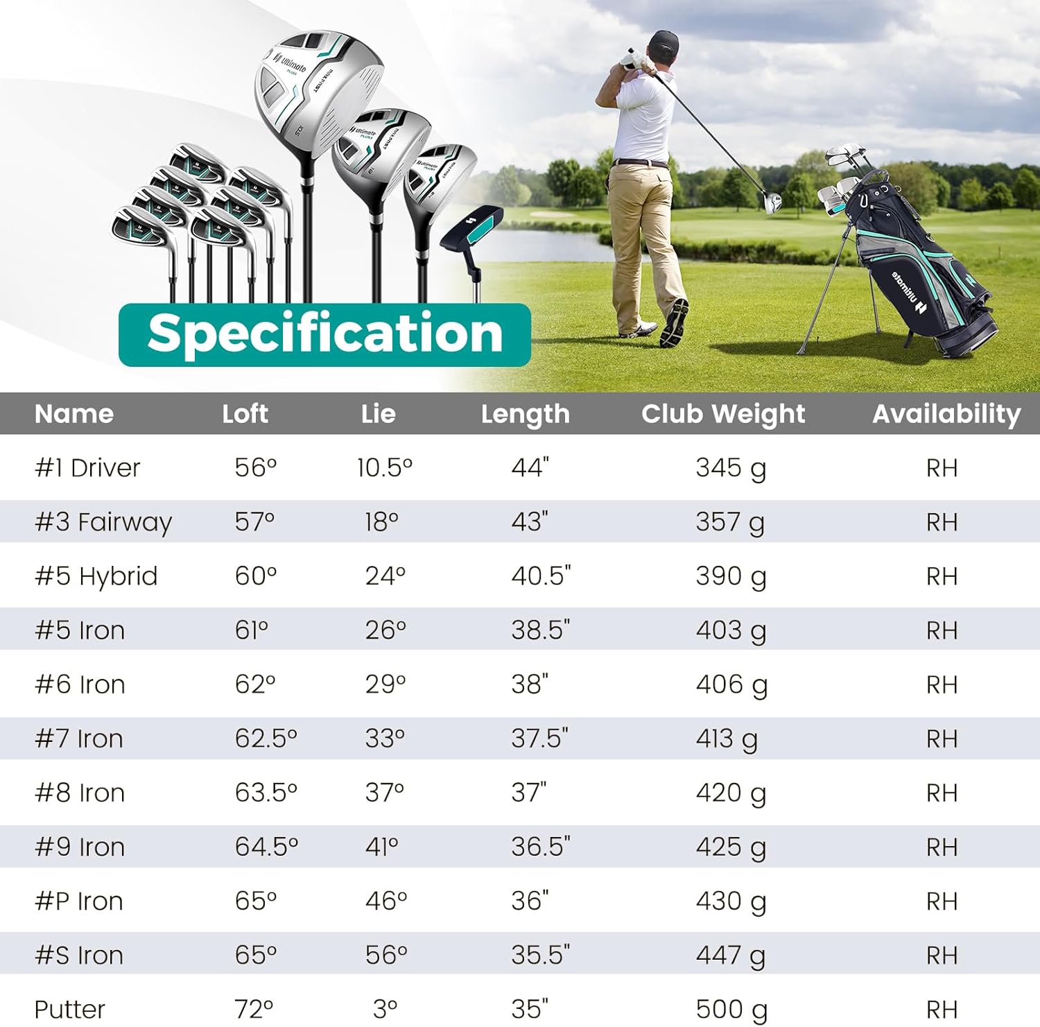 - 🏌️【Complete Golf Clubs Set for Men】 This golf set is equipped with premium golf clubs to meet all your training or competition needs, including #1 driver, #3 fairway, #5 hybrid, #5 & #6 & #7 & #8 & #9 & #P & #S stainless steel irons and zinc alloy head putter. Additionally, 3 head covers provide extra protection for your driver, hybrid and fairway.