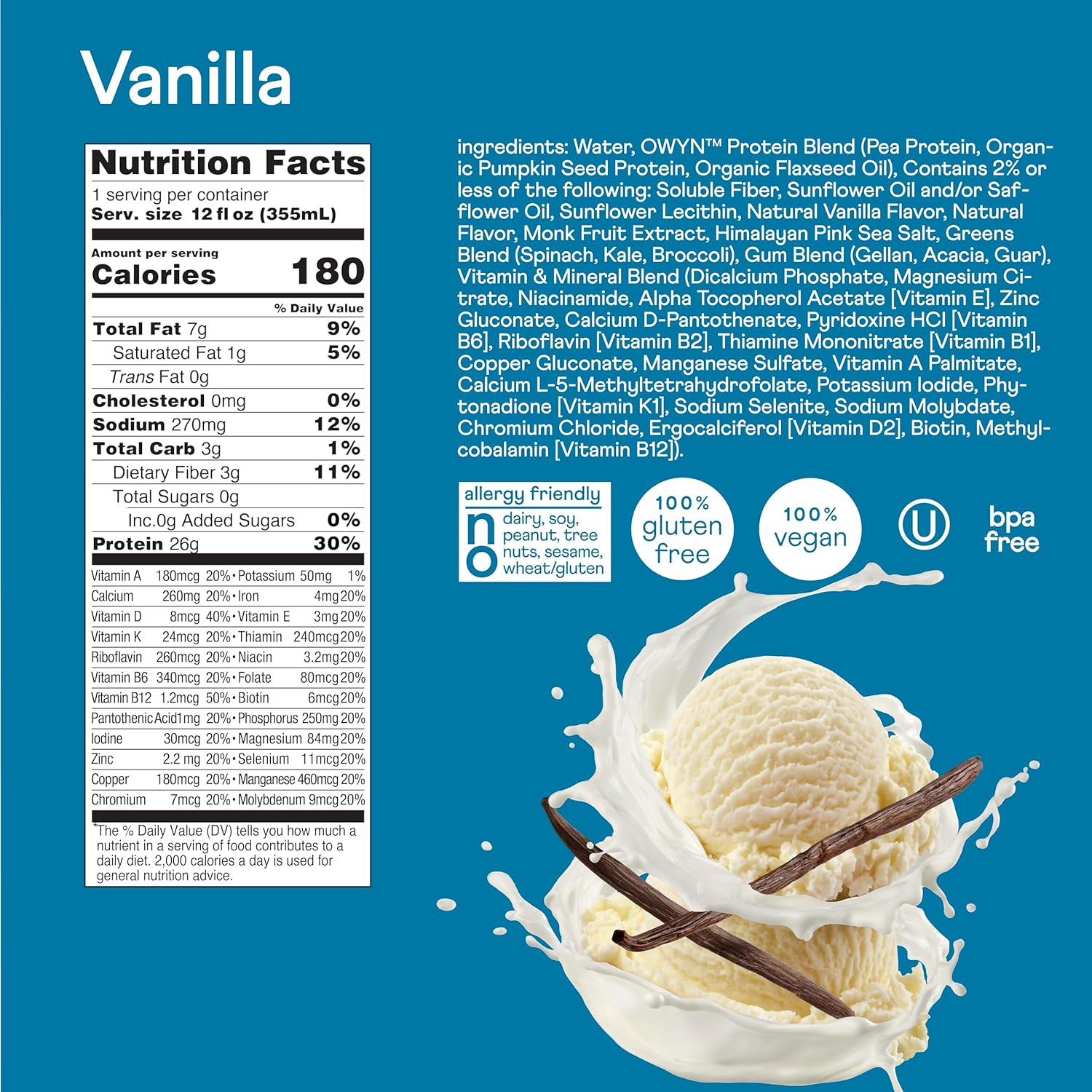 OWYN Only What You Need Protein Shake, High Protein Complete Nutrition Drink, Vanilla, 12 Fl Oz (12 Pack)