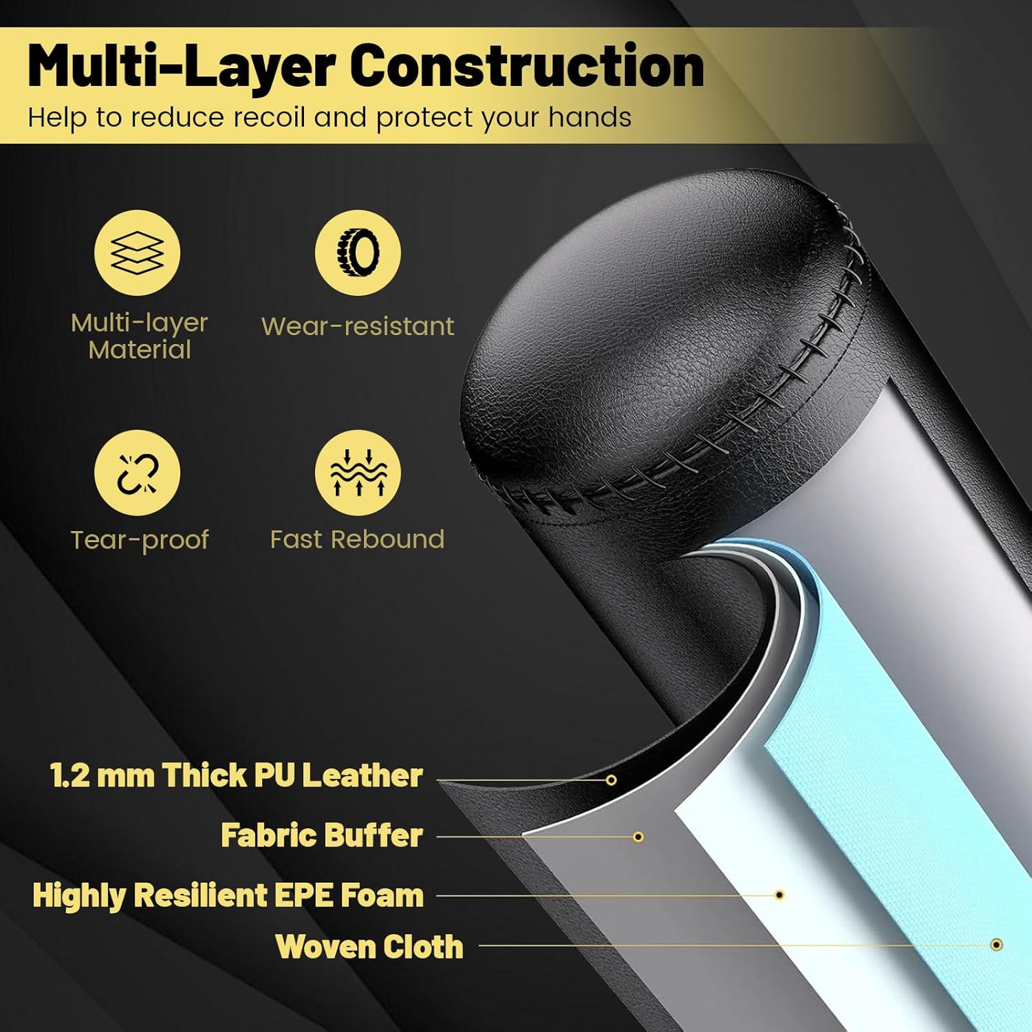 - 🥊【Multi-Layer Construction】 This punching bag is built with a 5-layer construction including thick PU leather, cushioning flannel, high resilience EPE foam, durable fabric buffer, and heavy-duty stainless steel tube, which can withstand the toughest punches and kicks, extending its service life and offer maximum protection.