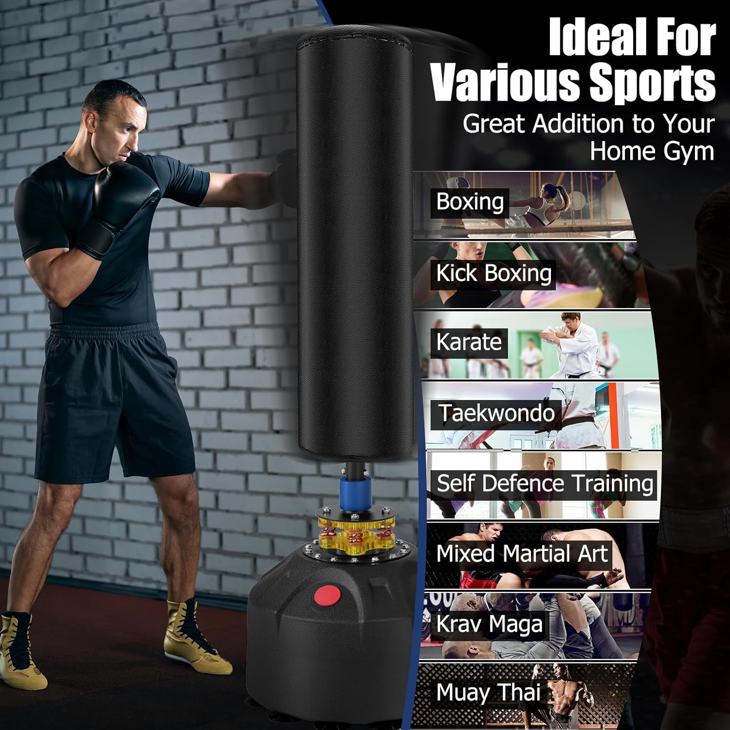 - Freestanding Convenience: This workout equipment is freestanding, allowing you to place it anywhere in your home or gym. There is no need for cumbersome installations or ceiling mounts. Train anytime, anywhere, and take your boxing or martial arts skills to the next level.