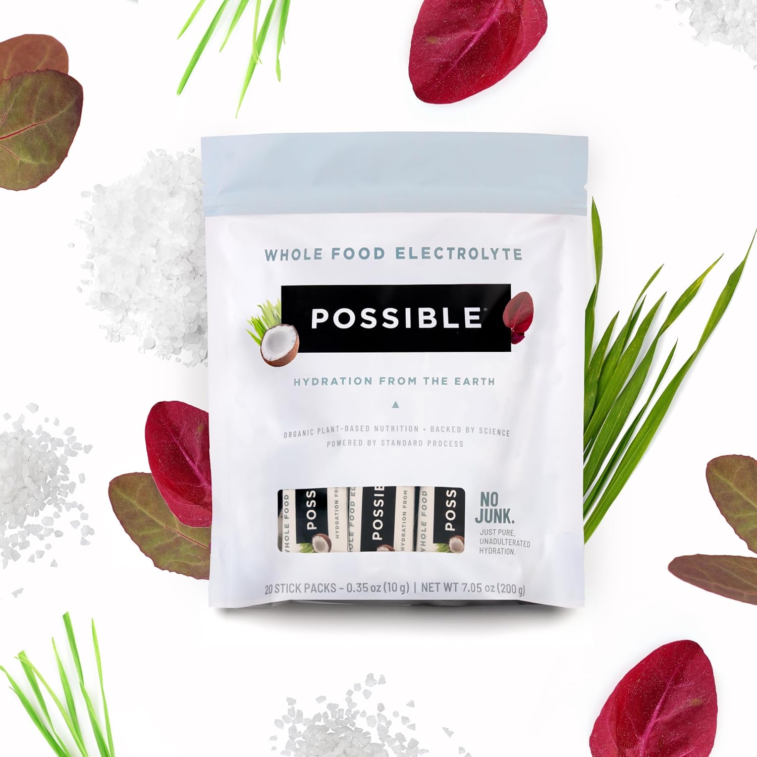 Possible Whole Food Electrolyte - Powder Drink Mix for Pre-Workout, Post-Workout & Everyday Hydration - Vegan, Plant-Based Wellness - Gluten-Free, USDA Organic - Clean Label - 20 Stick Packs