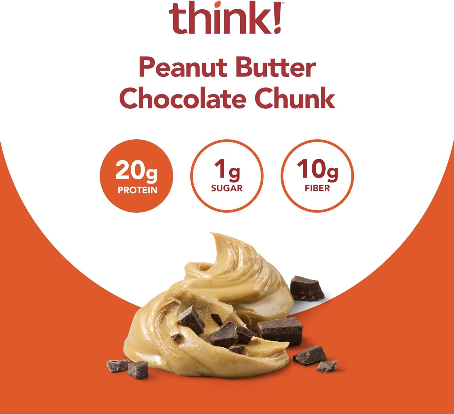 think! Protein Bars, High Protein Snacks, Gluten Free, High Fiber, Peanut Butter Chocolate Chunk, 10 Count