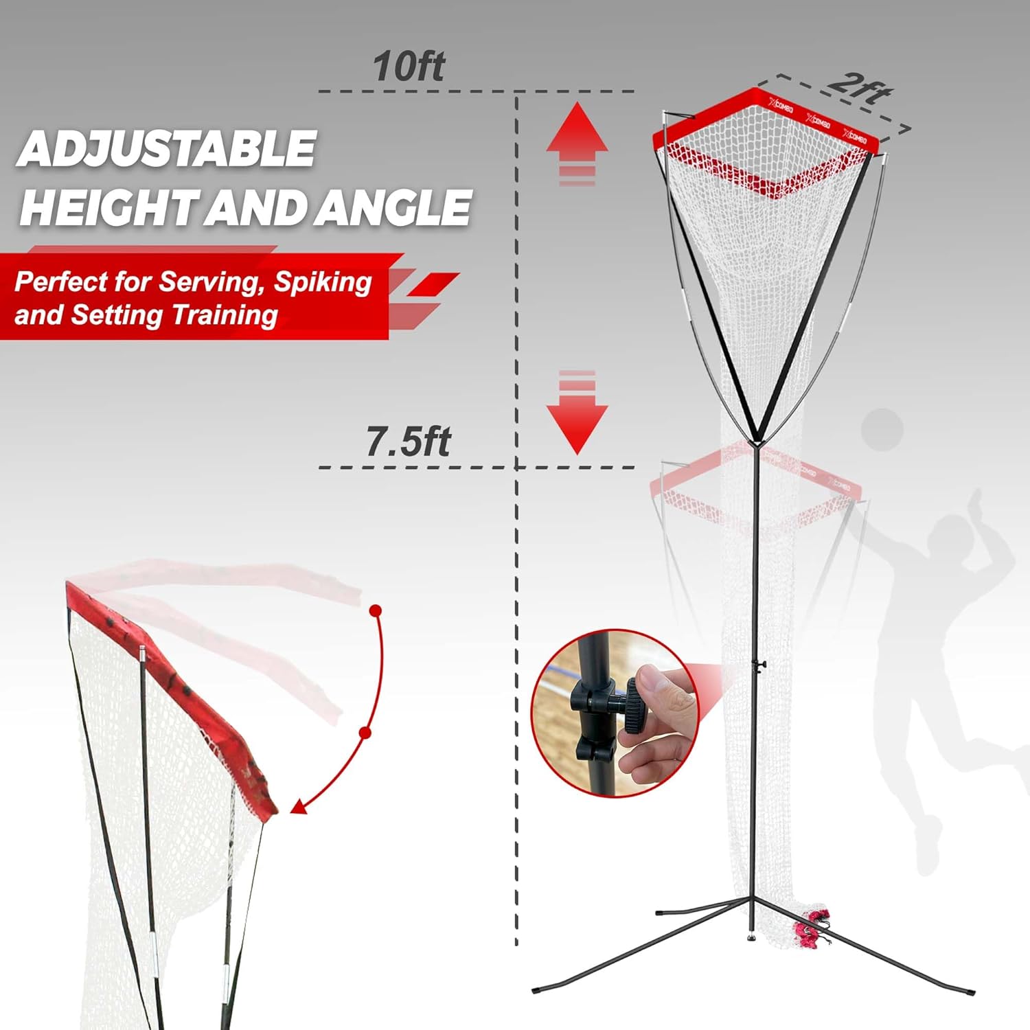 - Adjustable Height and Angle: Take control of your training with heights ranging from 7.5 to 10 feet. Easily adjust this basket between 45 and 180 degrees, catering to your practice needs. This volleyball setter trainer net is perfect for serving, spiking, and setting training, accommodating all ages and skill levels