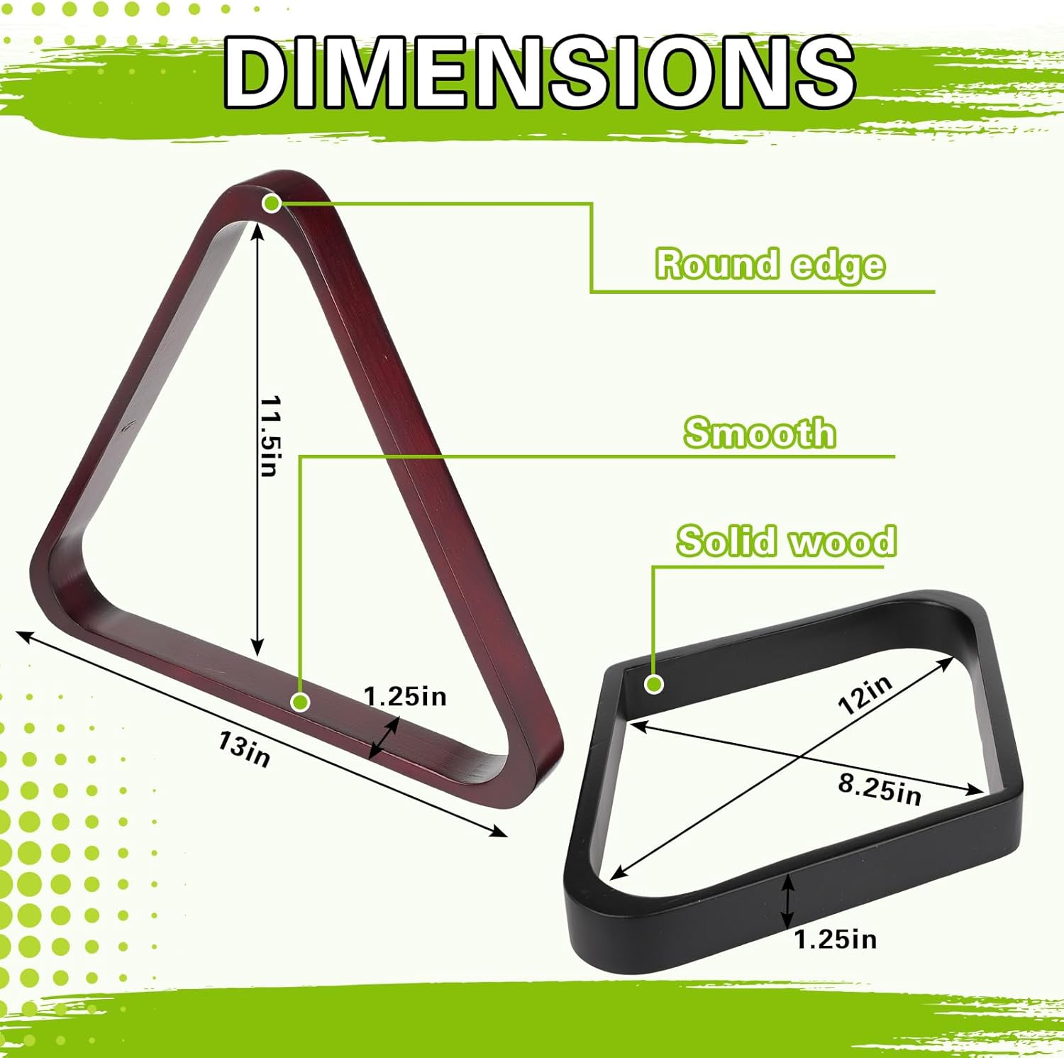- Proper Size Compatibility: the triangle rack measures approx. 13" x 11.5" x 1.25", while the diamond rack dimensions are approx. 12" x 8.25" x 1.25", ensuring a reliable fit for standard 2-1/4β size billiard balls; Each billiard ball in this set measures approx. (2-1/4") 57mm in diameter, meeting most standard specifications for gameplay