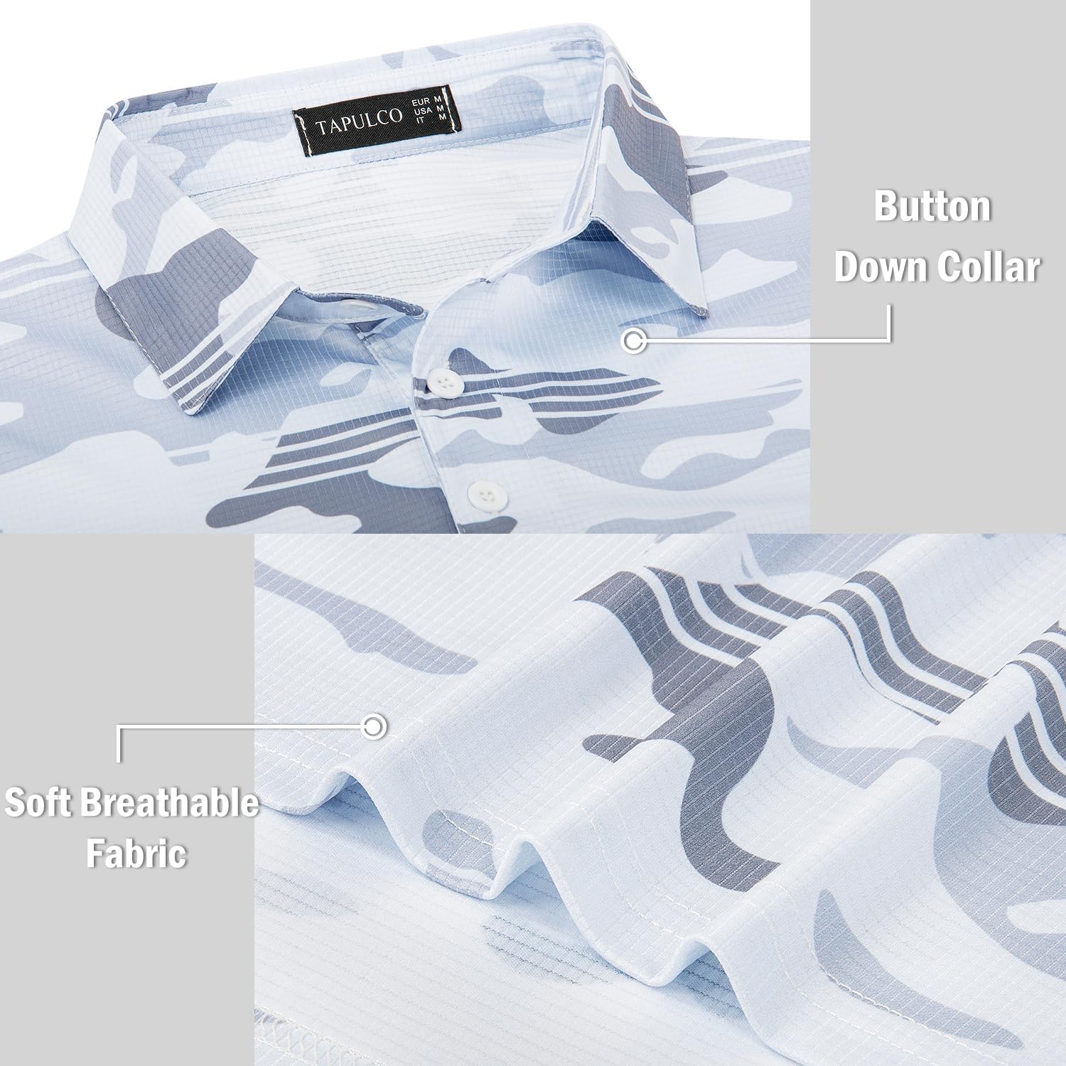 TAPULCO Mens Quick Dry Polo Shirts Camouflage Pattern Performance Athletic Lightweight Breathable Casual Golf Tshirts