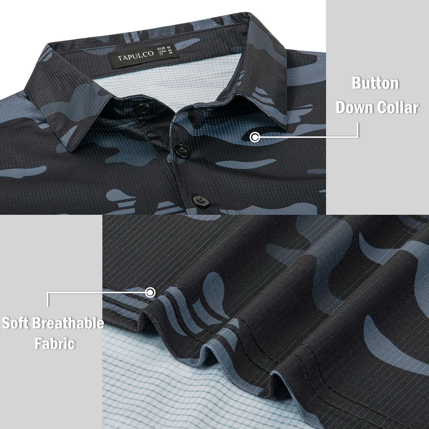 TAPULCO Mens Quick Dry Polo Shirts Camouflage Pattern Performance Athletic Lightweight Breathable Casual Golf Tshirts