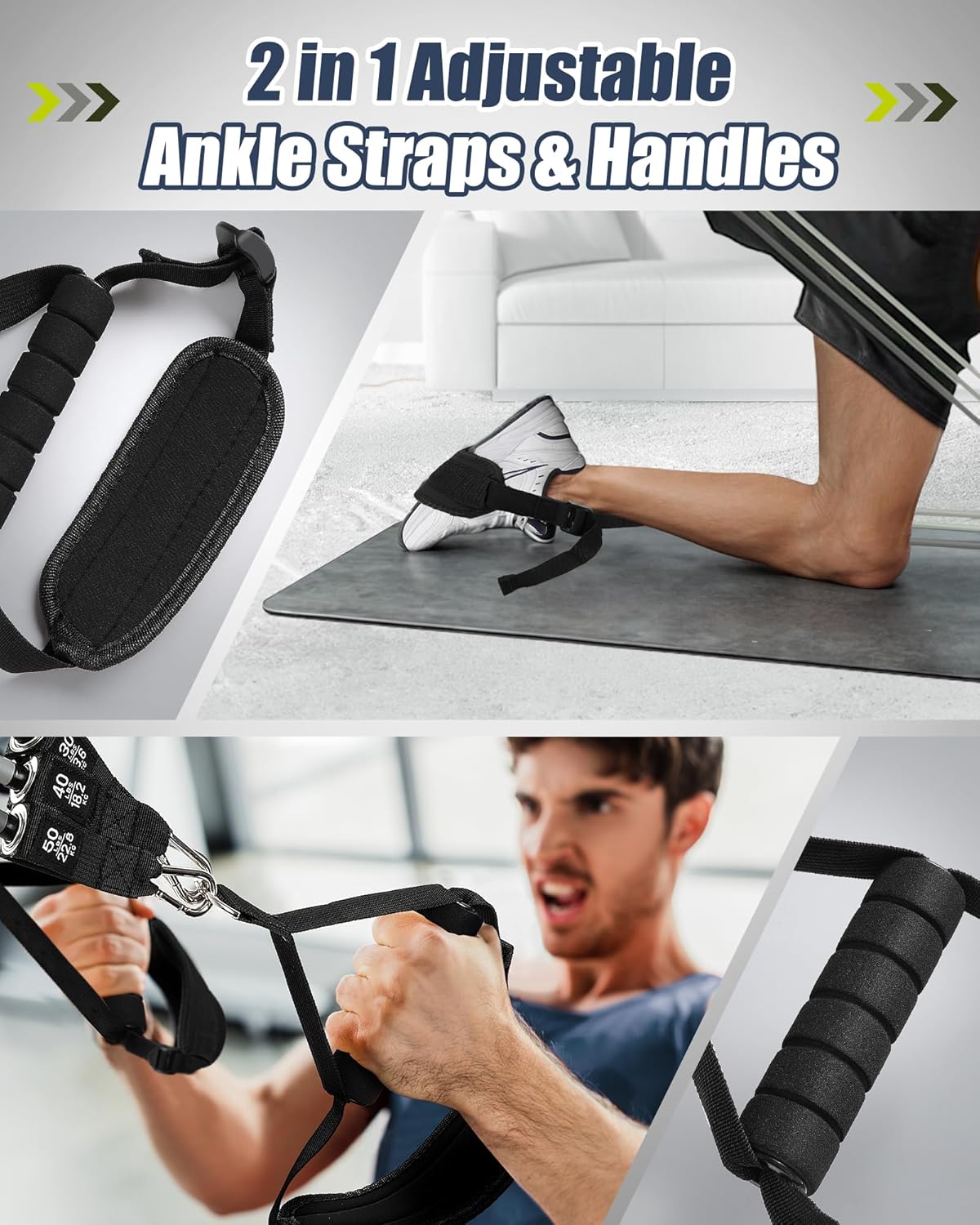 - 【6 Natural Latex Resistance Bands】Our resistance bands(30/40/50lbs) are adjustable in length, you can adjust them according to your height. The resistance band is made of durable, break-resistant latex, which will provide a combined resistance of up to 240 lbs, you can adjust the intensity of the workout according to your level.
