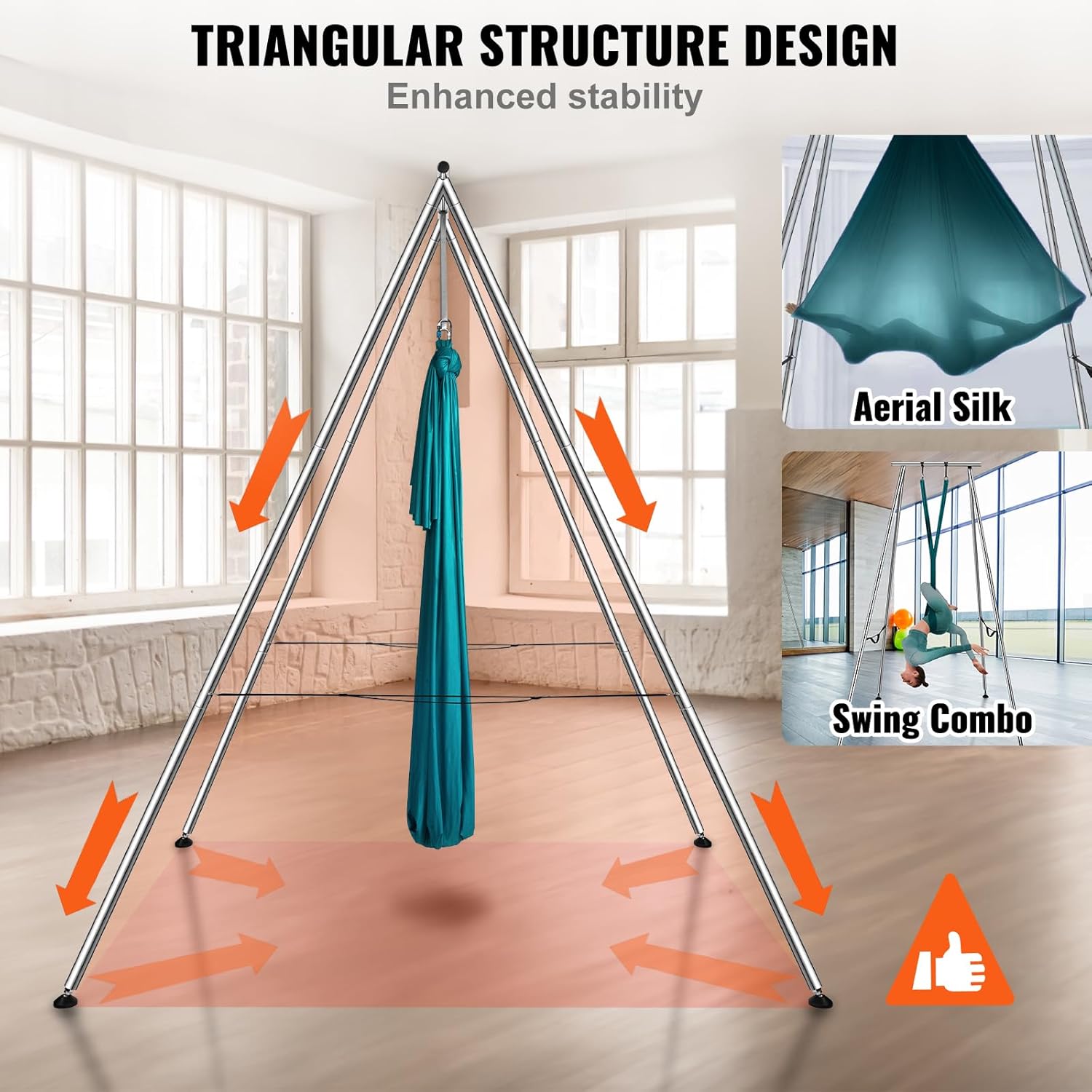 - Double Protection: Our aerial yoga stand frame's clever triangular structure, combined with a non-slip base, ensures stability in all poses. Practice with peace of mind, focusing on your yoga journey without security concerns.