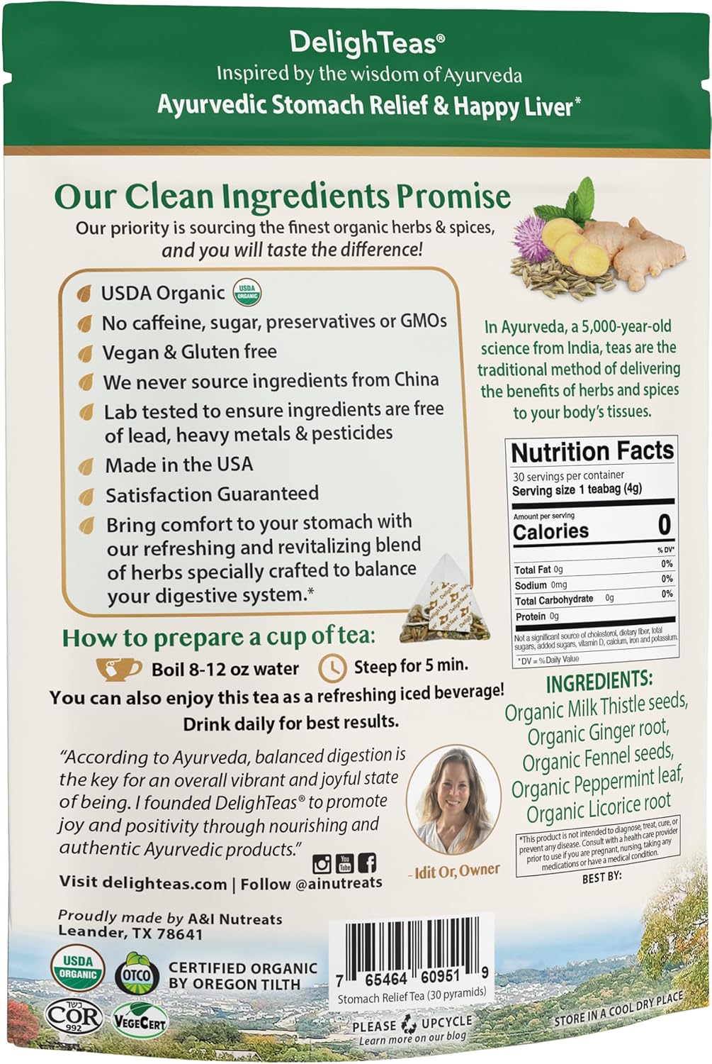 DelighTeas Liver Detox Tea Bags | Eco-Conscious Pyramid Tea Bags | Ayurvedic Stomach Relief & Liver Support | USDA Organic, Vegan, Caffeine Free, Kosher | 30 Tea Bags, 4g each