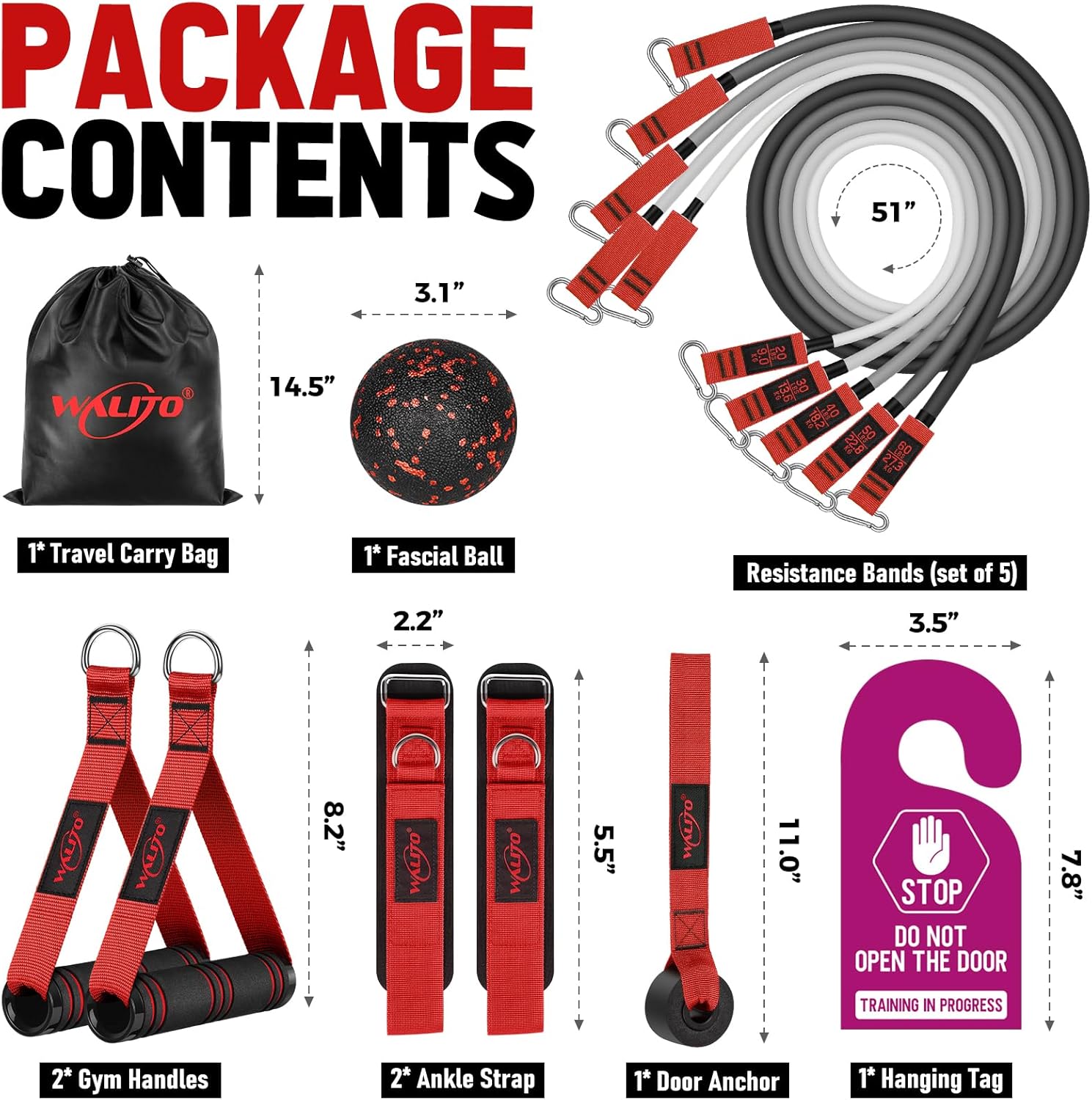 WALITO Resistance Bands Set - Exercise Bands with Handles, Door Anchor, Legs Ankle Straps, for Heavy Resistance Training, Physical Therapy, Muscle Training, Yoga, Home Workouts