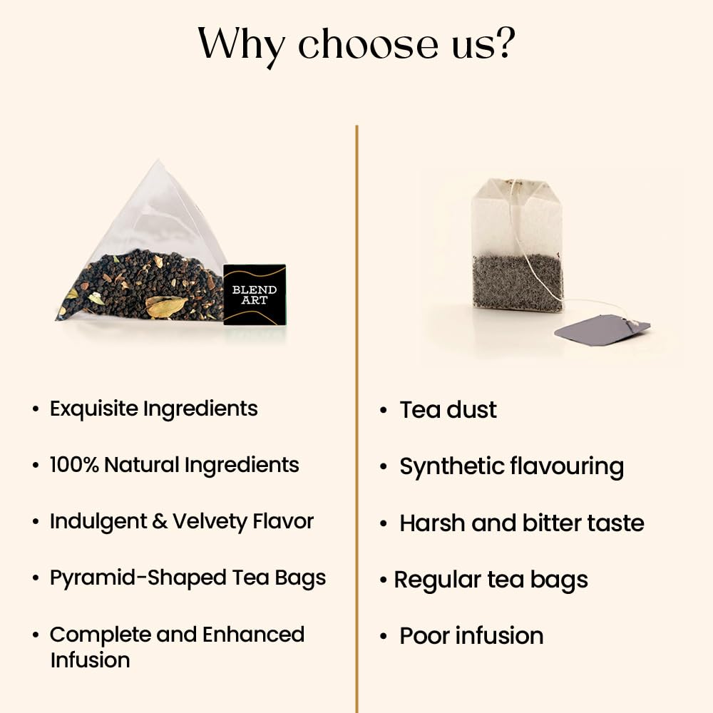 Blendart India's Original Masala Chai Tea bags 100 Count | Eco- Conscious Tea Bags | Premium Assam Black Tea | Ginger and Cardamom Flavour | Whole Loose leaf Tea bags | Indian Spiced Chai Tea Bags
