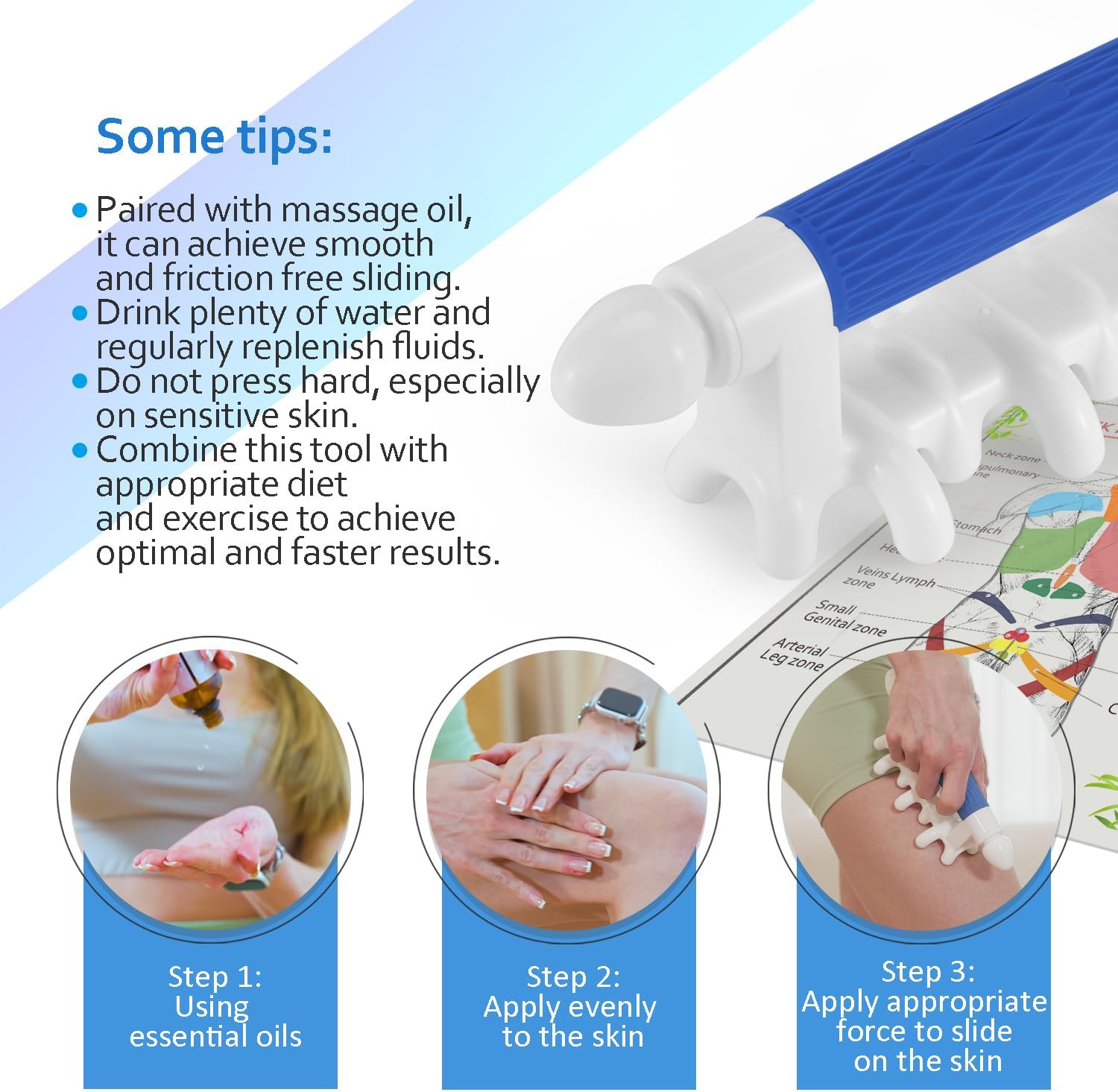 Fascia Massage Tool Myofascial Release Blaster Tools for Anti-Cellulite Skin Soothing Lymphatic Drainage Trigger Point Deep Tissue Neck,Shoulder,Lower Back,Psoas,Thighs,Butt & Full Body (Blue)