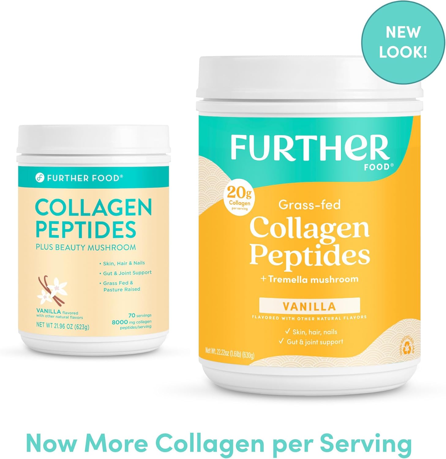 Further Food Vanilla Collagen Peptides Powder, Grass-Fed Pasture-Raised Hydrolyzed Type 1 & 3 Protein, Gut Health + Joint, Hair, Skin, Nails, Paleo Keto Sugar-Free 22.22 oz