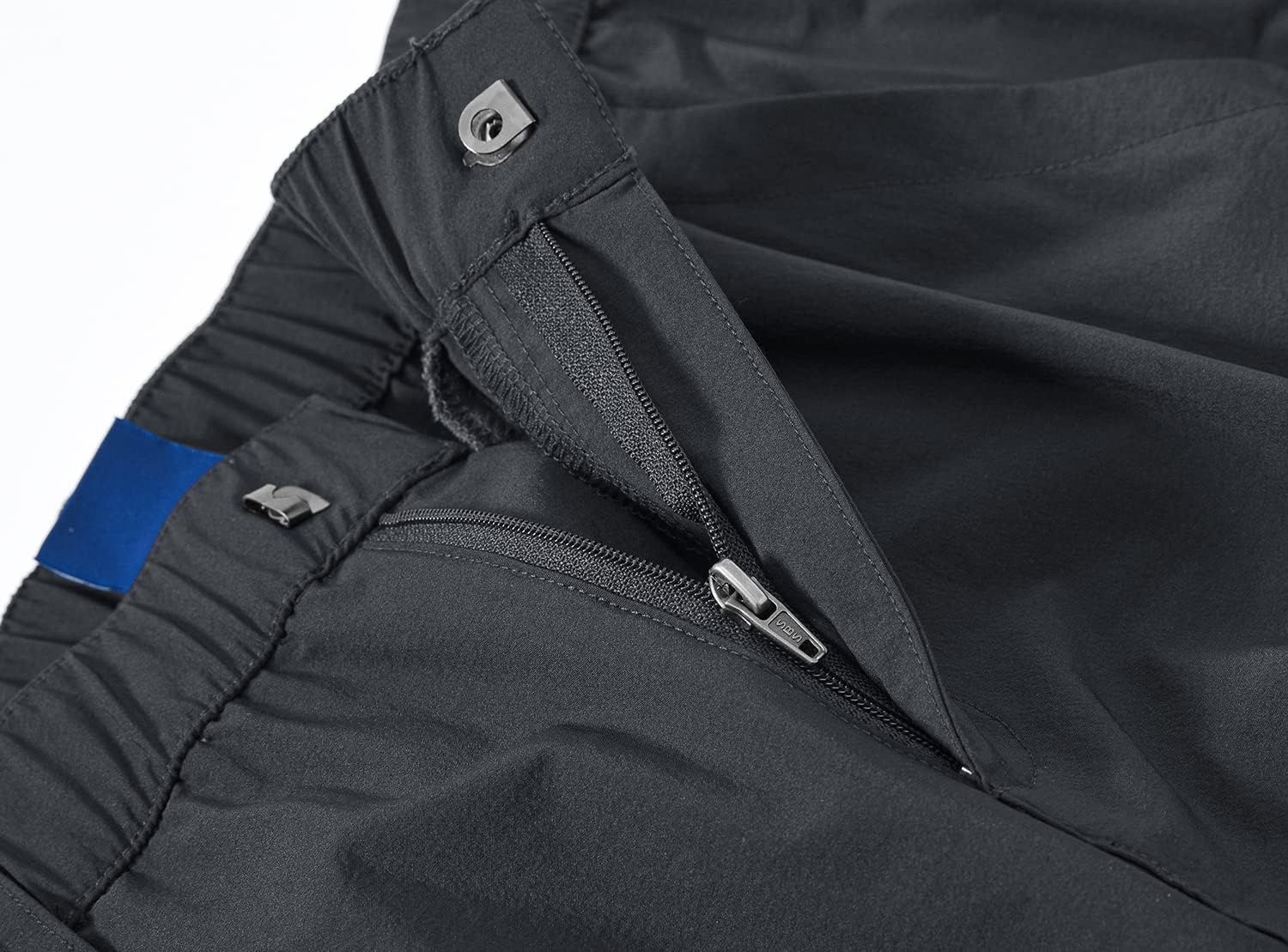 - 6 Pockets for multi function storage---2 front regular hand pockets + 1 flap cargo pocket on right leg, 1 zipper cargo pocket on left leg + 2 velcro flap pockets on back, keep your valuables secure
