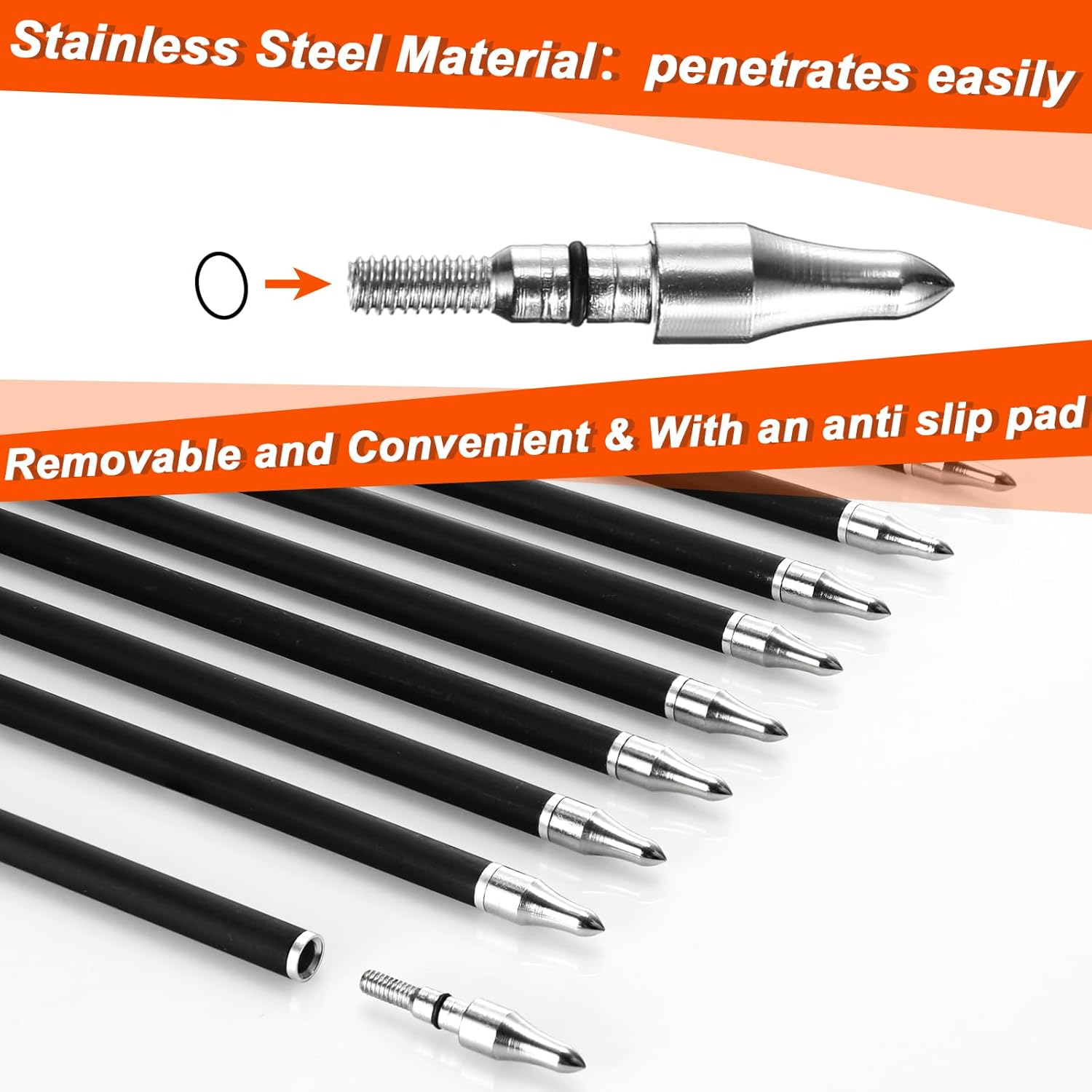 - Removable and Convenient: the carbon arrows can be disassembled for convenient replacement, and they come with an anti slip pad; The inserted arrow tail can be turned, which gives the user flexibility according to their preference and comfort; With the color of orange white, these arrows not only provides a stylish look but also ensures visibility in various outdoor conditions